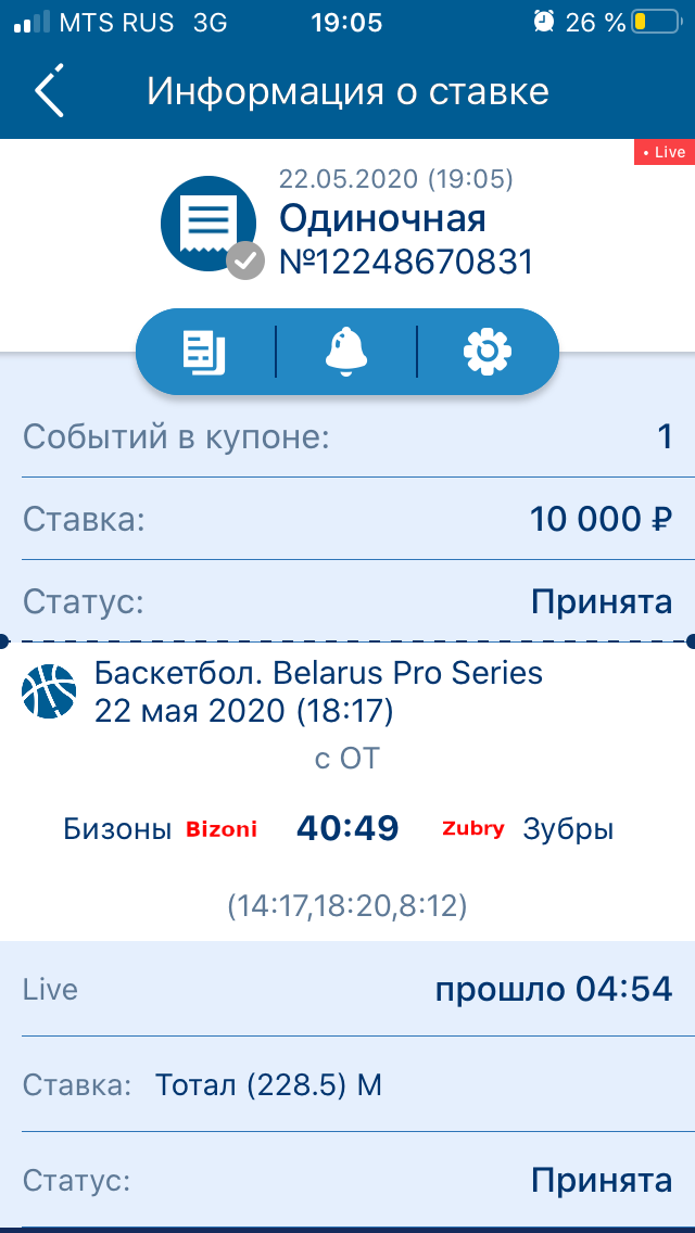 поставил Тотал меньше на баскетбол Белоруссии , сыграло естественно ТМ но рассчитали возвратом , помогите разобраться
