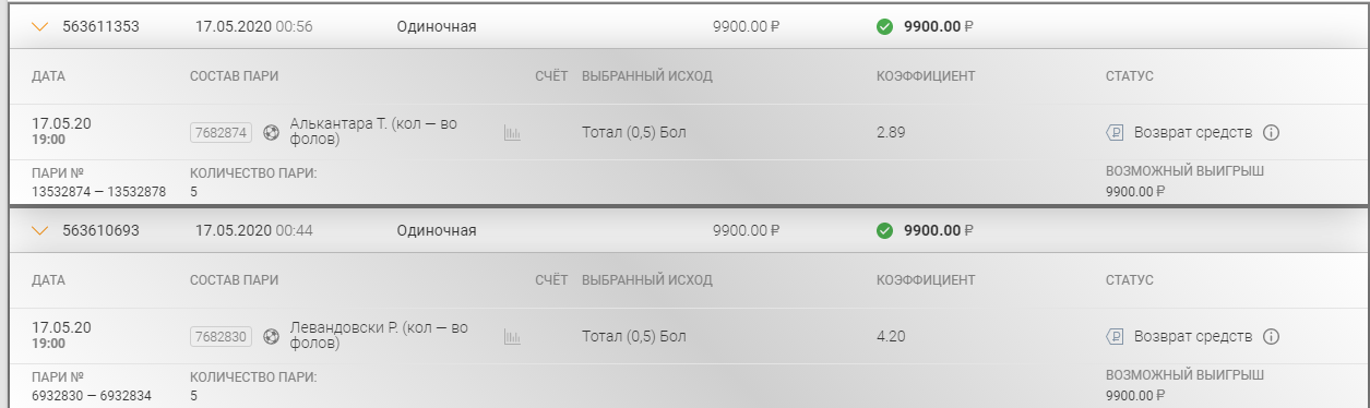 Ставил на фолы игроков Баварии (Левандовски и Алькантара) в матче против Униона. Букмекер принял ставки. События, на которые были ставки - выиграли ! Но букмекер рассчитал с коэффициентом 1 подписав - некорректное значение коэффициента. Я понимаю, если запятую в коэффициенте забыли - он некорректный и это явная ошибка. Но здесь было всё нормально ! Важно отметить, что примерно такие же коэффициенты (довольно высокие) давал и другой букмекер - БК Тенниси ! Поэтому считаю несправедливым в данном случае писать про некорректность коэффициента. Это был коэффициент близкий к рыночному - пример с другим букмекером и схожими коэффициентами лучшее тому подтверждение. Это выглядит очень неуважительно к игроку со стороны Балтбет. Прошу Legalbet помочь решить проблему и напомнить БК Балтбет о понятии порядочности и справедливости. Иначе совсем игра в одну калитку получается - крупные выигрыши возвращаем, а проигрыши забираем.