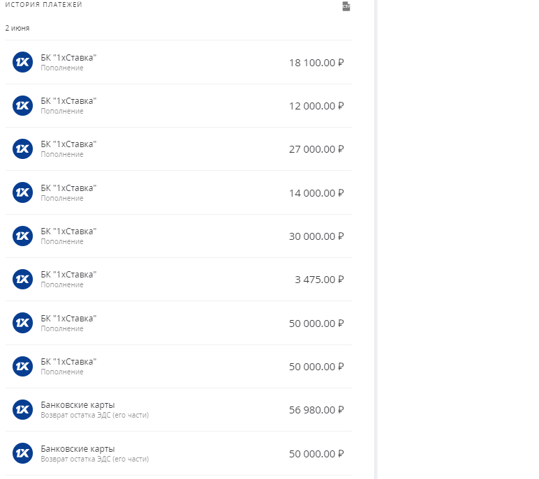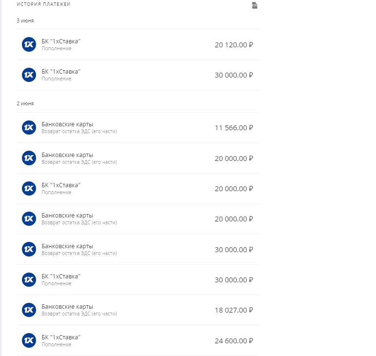 Возможно ли запросить полную историю ставок у букмекерской конторы 1хСтавка? А то там отображаются ставки только за последние 3 дня. Из того, что отображается на сайте Первого ЦУПИС, пополнений за последние дни у меня на сумму чуть более 850 тысяч, а выводов на сумму около 490 тысяч(Сюда могу приложить лишь 3 скриншота), в следующем комментарии приложу еще 2. Повторюсь, сумма пополнений за время игры на сайте примерно на 2 миллиона больше суммы выводов.