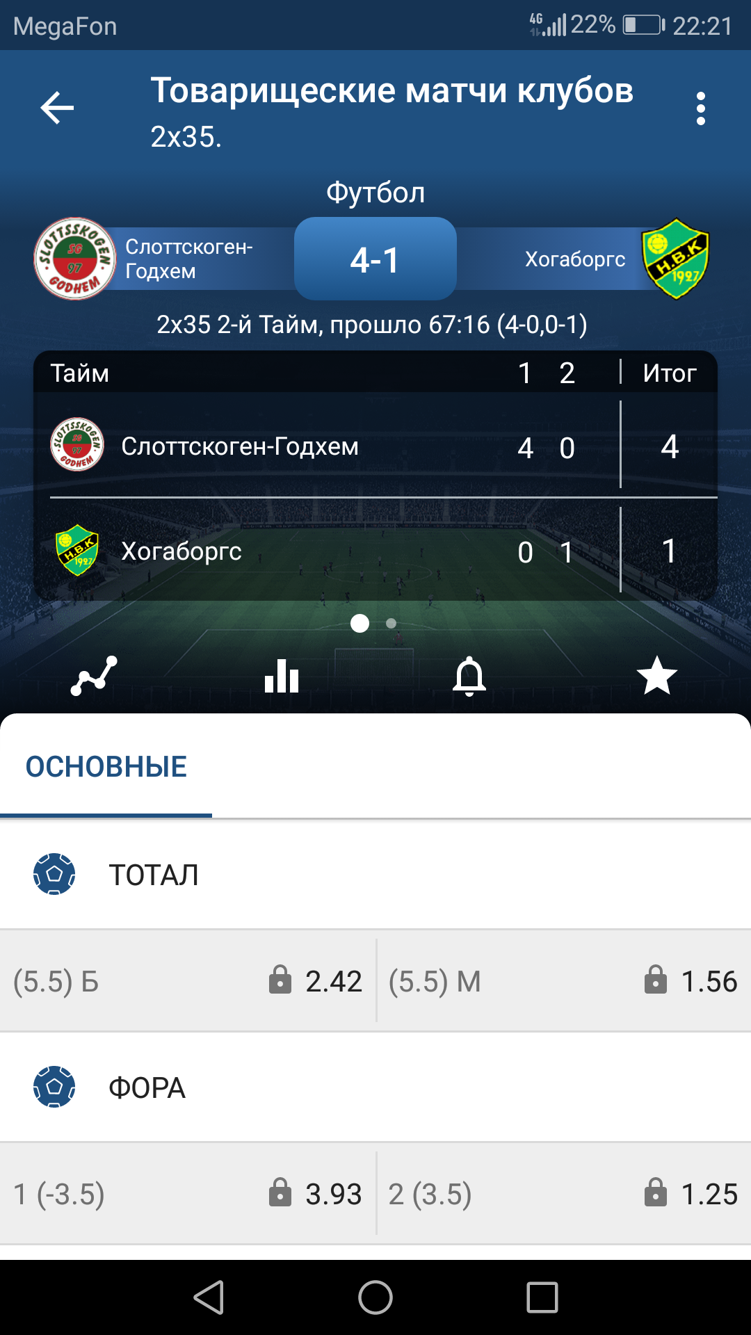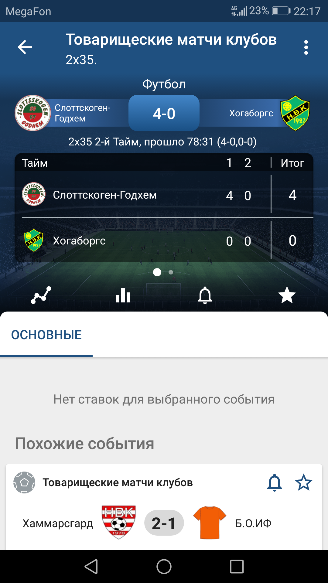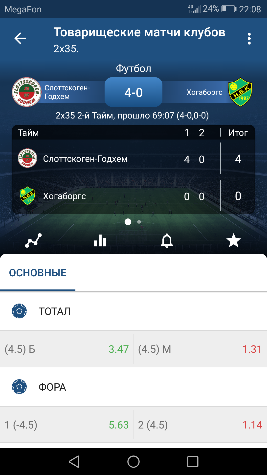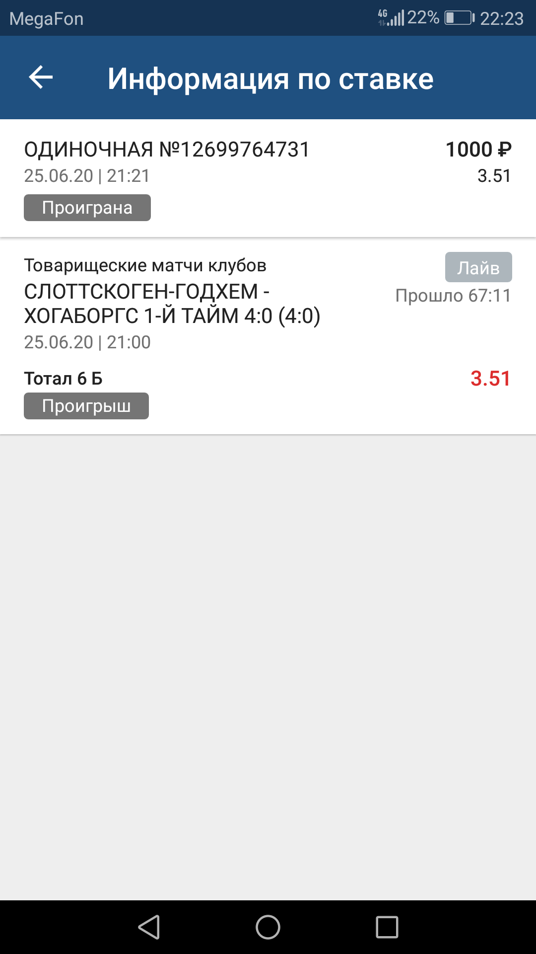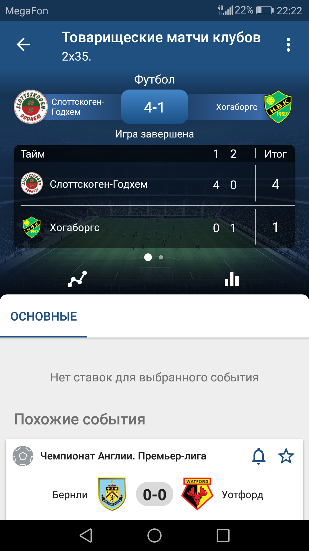 Заключил пари на товарищескую встречу по футболу между: СЛОТТСКОГЕН-ГОТХЕМ - ХОГАБОРГС в лайве, на 25 мин. ставка т.б. 6 в первом тайме( на этот момент, по формату встречи не чего не предупреждалось и не помечалось. После истечения 36 мин., прием ставок на это событие было приостановленно. Сразу же после 36 минуты засветилось 45 мин. (4:0) перерыв. После этого я позвонил в с.п., где сообщили, что я должен сам отсматривать события и правила игры. Хотя у 1 хставка на момент перерыва, было написанно: 1 т. 45 мин. (4:0) Как только началься второй тайм, формат встречи был изменен на 2х35 мин. Заснять я не смог. Но во втором тайме чудеса продолжились. В скринах прилагаю докозательства. Прошу разобраться администрацию сайта, в с.п. 1хставки отвечают шаблонами!!!