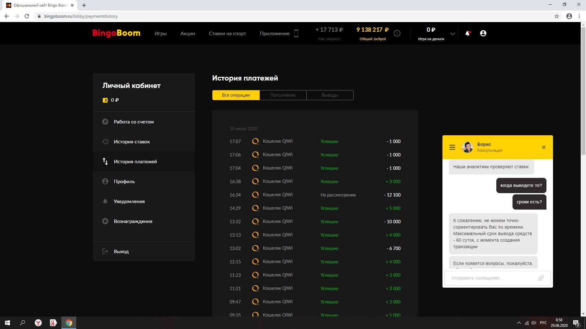 ЗДРАСТВУЙТЕ, ВСЕ НОРМАЛЬНО БЫЛО ПОКА Я НЕ ПОСТАВИЛА ДЕНЬГИ НА ВЫВОД, КАК ТОЛЬКО ПОСТАВИЛА ДЕНЬГИ НА ВЫВОД И ОНИ СРАЗУ НЕ ПРИШЛИ, КАК РАНЬШЕ, ПОПОЛНИЛА ЕЩЕ ДЕНЕГ И ХОТЕЛА ПОСТАВИТЬ НО МАКСИМАЛЬНАЯ СТАВКА БЫЛА УЖЕ 30 РУБЛЕЙ, ПОСТАВИЛА НА ВЫВОД ПО 1000 РУБЛЕЙ И ОНИ СРАЗУ ПРИШЛИ, А ВЫВОД 12100 НЕ ВЫВОДЯТ, ВЧЕРА ГОВОРИЛИ БЛИЖАЙШИЕ ПАРУ ЧАСОВ ВЫВЕДЕМ, ПОТОМ ГОВОРИЛИ В ТЕЧЕНИИ 48 ЧАСОВ ТОЧНО, СЕГОДНЯ НАПИСАЛ ГОВОРЯТ 60 ДНЕЙ УЖЕ, ЗАВТРА СКАЖУТ 2 ГОДА ЖДАТЬ, ПРОШУ ВАС ПОМОГИТЕ ВЫВЕСТИ МОИ ДЕНЬГИ, ТОЛЬКО КАК ПОПОЛНЯЮ, ВСЕ НОРМАЛЬНО, КАК ВЫВОД ПОСТАВИЛ СРАЗУ ПРОБЛЕМЫ КАКИЕ ТО НАЧАЛИСЬ У НИХ.