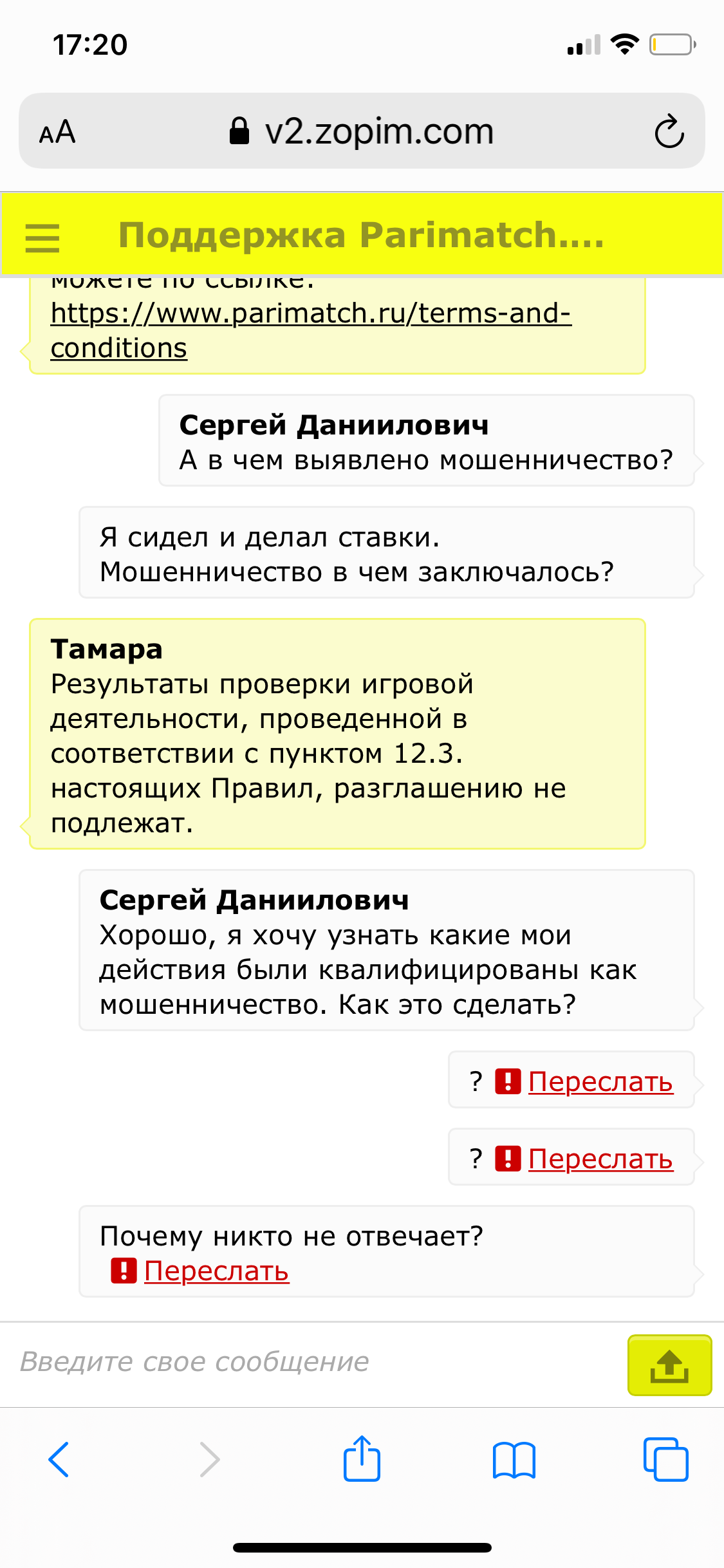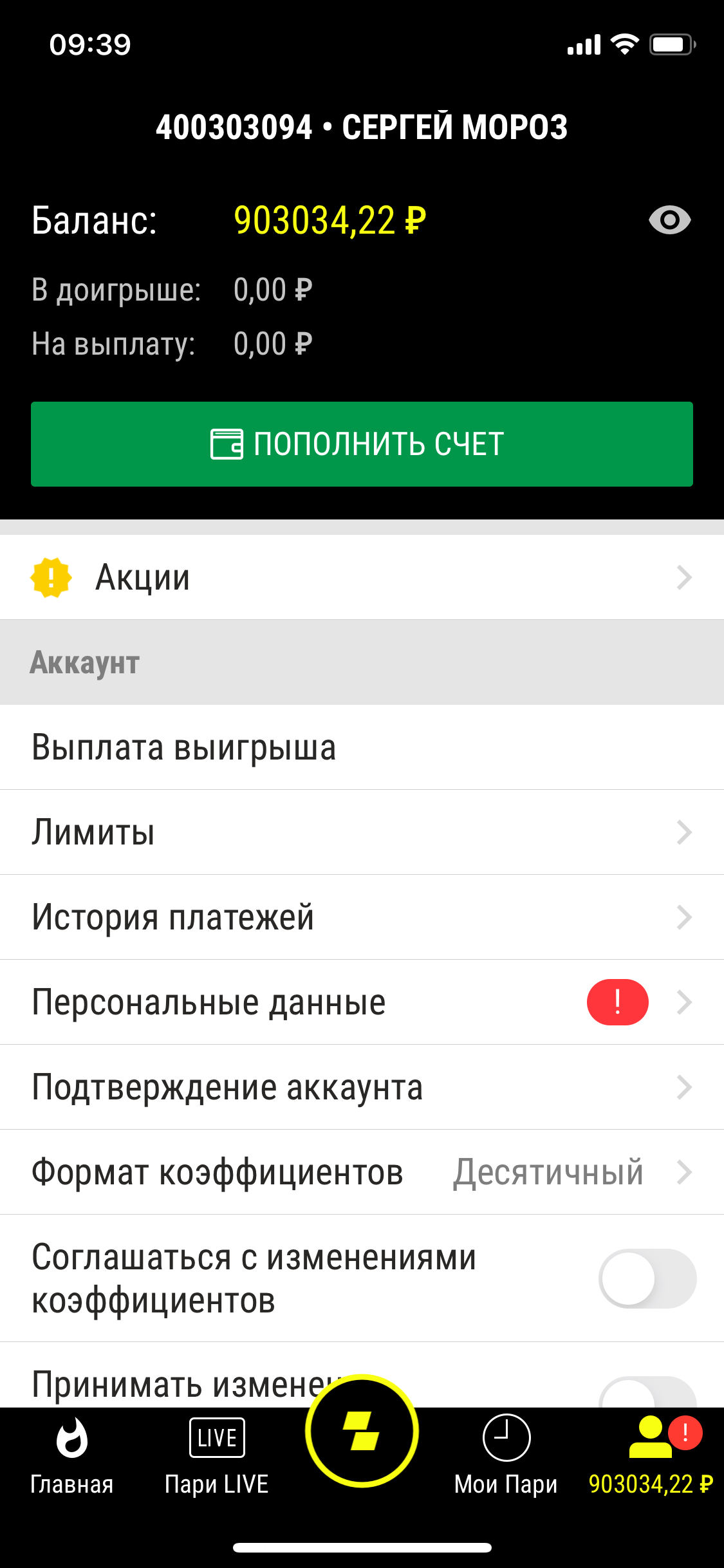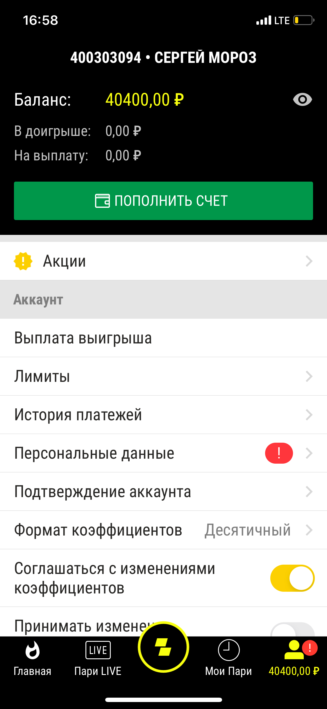 Зарегистрировался , пополнил баланс на 50+ тыс. руб., отыграл что-то, денег убавилось, точнее проиграл. Ещё пополнил на 18 тыс. Опять поиграл, удалось что-то выиграть. Сделал запрос, вывели 30 тыс. остальное повисло и букмекер требует повторной верификации, да ещё и такую жуткую - нужно как-то уместиться на фото с паспортом и листком бумаги с надписью, чтоб ничего не отсвечивало нигде. Во-первых, прошёл регистрацию в цупис, дал доступ к госуслугам! Во-вторых, у меня и функционала с собой такого в командировке нет, чтоб фоткаться и документы отсылать. Хотелось поиграть, время скоротать. Предложил скинуть фотку с паспортом которую делал для ипотеки онлайн, также есть фотки снилса, но уже не в обнимку. Молчание. То есть как проигрывать - верификация не нужна, как что-то выиграл так возникает намеренное создание ограничений. Какие-то мошенники наверняка выводят сотнями тысяч, а те кто зашел поиграться чтобы время скоротать сталкиваются с такими проблемами... Серьезная вроде контора, зачем так делать? Хотел играть потихоньку, не говорю что планирую заработать на этом, понятное дело, но хочется найти нормального букмекера и делать регулярно ставки чтоб не скучно было. Понадеялся на Париматч, но зря? Оказалась шарашкина контора что ли? Прошу разрешить Проблему. На счету на момент обращения. Номер счета 400303094