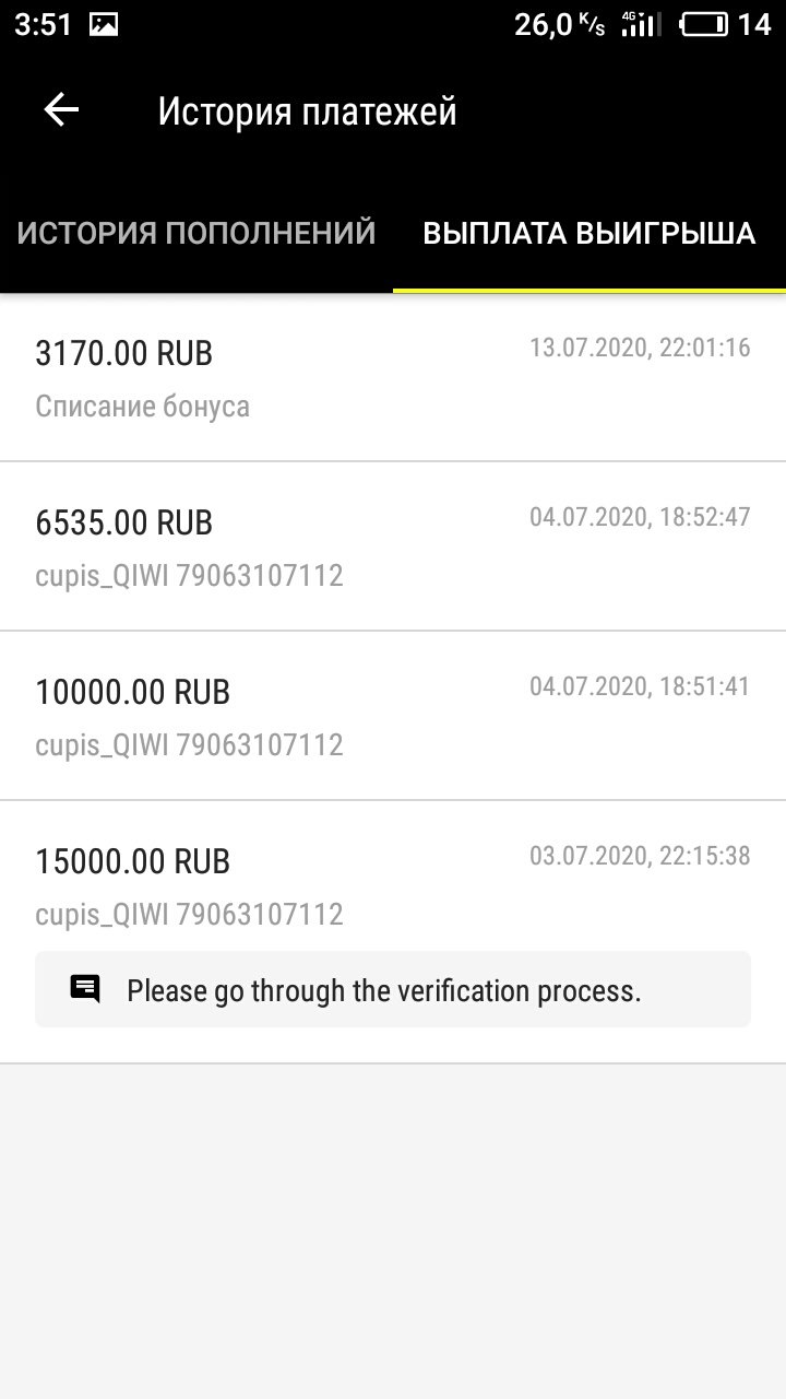 всем кому интересно покажу скриншоты. а начну с того что прочитала какая это замечательная контора и внесла депозит. когда начала выводить деньги пришлось проходить верификацию. даже по видеосвязи звонили,задавали вопросы,запросили документы . ну как бы все, вывели деньги. потом вносила деньги и вывела без проблем. на третий депозит они мне начислили какой то бонус. у саппорта поинтересовалась как отыграть и отыграла. запросила леньги на вывод и тут началось. запросили опять документы. сэлфи пасспорт но по видео уже не звонят!потом присылают сообщение что вы обвиняетесь в нарушении правил вывод разрешен но играть вы больше не можете. в итоге из 21000 вывели с горем пополам 4000 остальное украли и обвинили в мультиакаунтинге. как? что ж вы?пощвоните мне так же по видеосвязи я опять отвечу на ваши вопросы если думаете что я это не я, или покажите мне где у меня еще аккаунт. в общем вот так вот нагло кидают людей на деньги.я расстроена.ладно бы и вправду я делала что то такое. а так просто взяли и присвоили мои деньги,и управы нет на ****. да и в органы обращаться больше на юриста потратишь. на это и рассчет. воры в общем наглые, без причин воруют деньги.