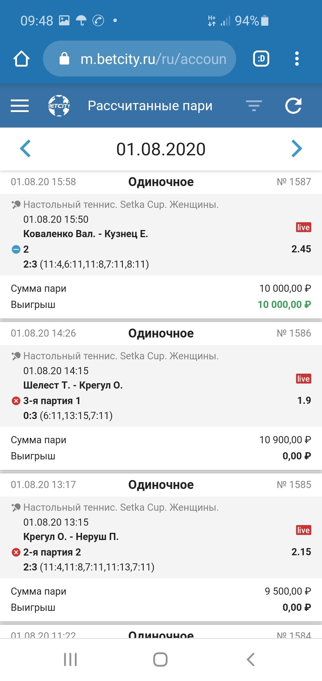 Добрый день. По информации от букмекера, произведен возврат ставок в некорректными коэффициентами. Можете выложить скриншоты ставок, по которым вам дали возврат?