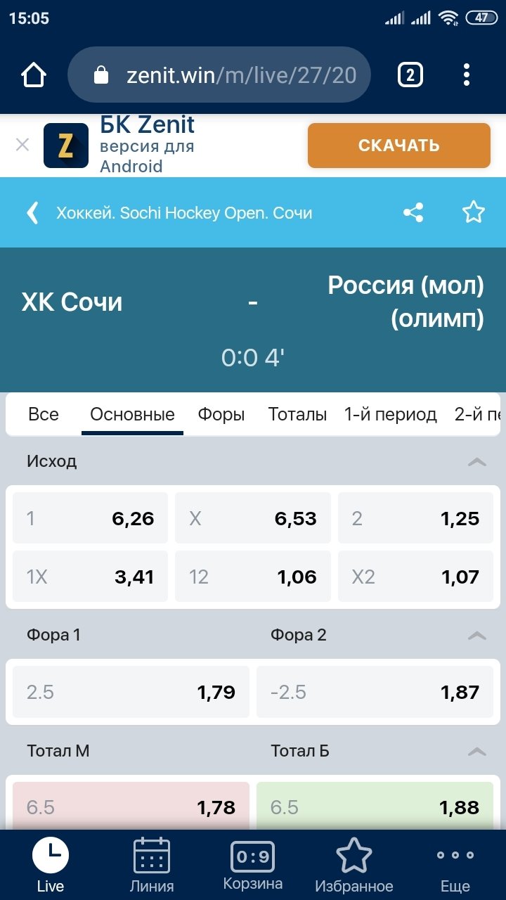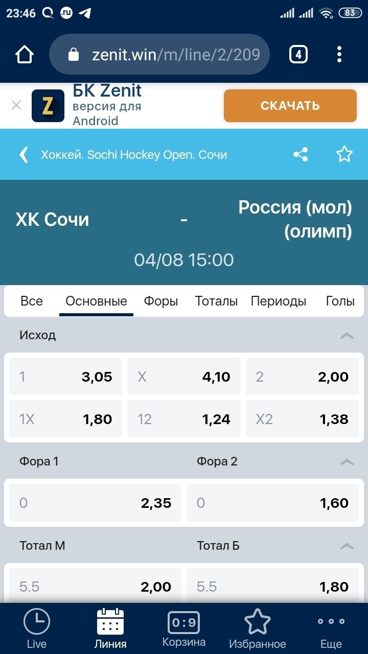 04/08 15:00 ХК Сочи — Россия (мол) (олимп).