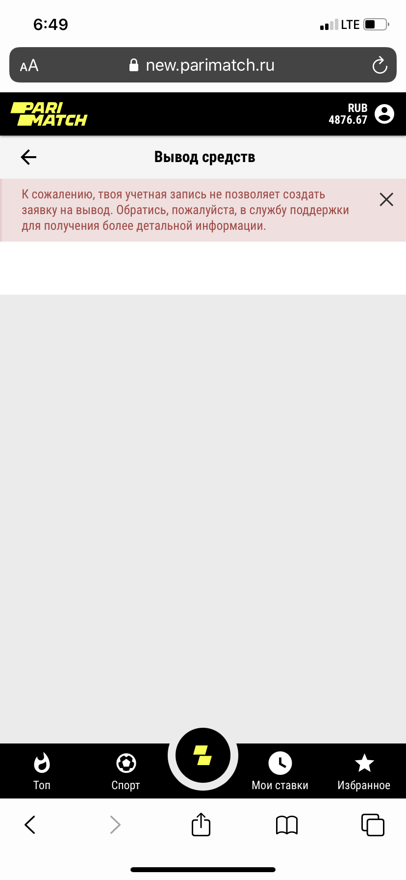 Здравствуйте уважаемые Legalbet. Произошла вот такая ситуация сделал депозит в 5000рублей. Начал выигрывать. Хотел вывести денежные средства ,но получил следующие сообщение “К сожалению, Ваша учетная запись не позволяет создать заявку на вывод. Обратитесь, пожалуйста, в службу поддержки для получения более детальной информации.” Отправил им на почту все нужные фотографии – На данный момент уже ,ответа от них так и не поступало,средства до сих пор вывести не могу, надежда только на вас.