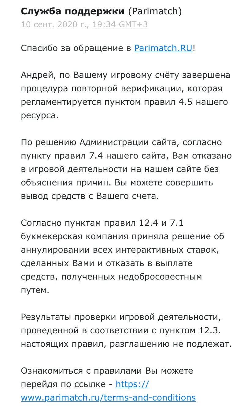 70.000 тыс. контора париматч украла с моего счёта. Делайте выводы люди, с каждым может произойти тоже самое что и со мной. Не рекомендую ставить в париматче.