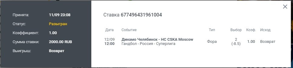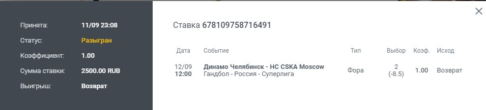 Сказ о том, как компания не хочет выплачивать выигрыш по абсолютно адекватной ставке, перед сном вечером я поставил ставку на матч гандбола Российской суперлиги Динамо Челябинск — ЦСКА Москва, на фору — 8.5 ЦСКА за кф , перед матчем ставка была в игре, я смотрел и следил за матчем, в итоге ставка проходит, на балансе скоро появляется выигрыш, а через некоторое время рассчитывается с кф.1, в службе поддержки ответ на данный вопрос последовал, что ставка отменена из-за технической ошибки!!! А теперь доказательства, что компания просто не хочет выплачивать выигрыш по ставке, во-первых если есть какие то подозрения, что ставка некорректна, ее можно рассчитать до матча тем более это ставка предматчевая, но никак не после матча рассчитать выигрышем и позже перерассчитать с кф.1, это не какая-то низшая лига, это высшая лига чемпионата нашей страны и один из сильных клубов на данный момент, на что тогда ставить, чтоб выиграть можно было!? во-вторых предоставляю скрины оддспортала и флешскора по движению кф на фору — 8,5, по ним видно, что кф особо не двигался и держался на одном месте, так какая может быть техническая ошибка, чтоб не выплачивать.я не пойму, прошу помочь рассчитать ставку по кф. скрины приклепил.