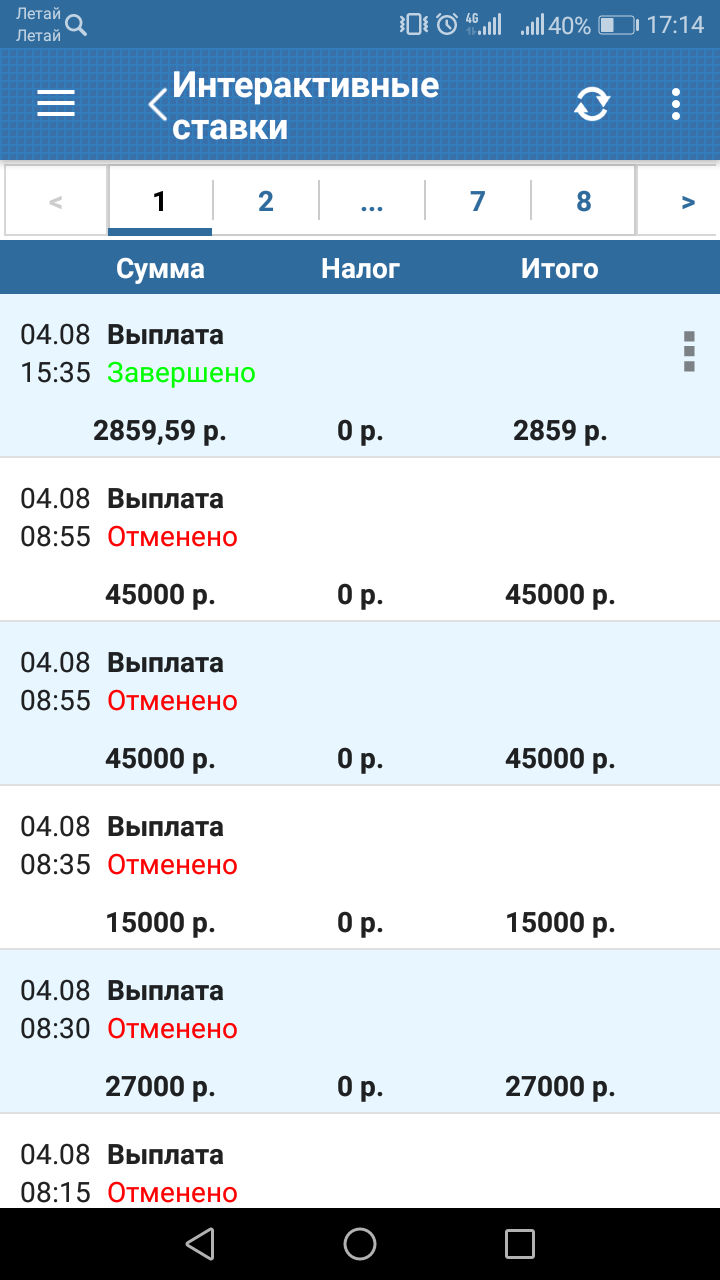 Здравствуйте. Зарегистрирован в бк бесит давно, проиграл более 300 000 рублей точно не могу сказать, вроде выплачивает выйграш нормально, один раз было сто вывел около 50 000, на счету оставалось 80 000 и начались проблемы с выводом, техническая ошибка, написал на почту ответили через неделю что все хорошо вывод налажен, когда уже денег не было на счету. Это предистория. Пополнил счёт на 2000 рублей, сделал серию удачных ставок и поставил на вывод, вывел 12 000,стал играть дальше, ввыйграл, поставил на вывод, ждал около 2 часов, не выводят, играл в итоге выйграл около 52 000, выплату отменял заказывал снова думал проблема в платёжной системе в итоге все ставки рассчитали с коэффициентом 1 и на счету осталось 2859рубля, которые удалось вывести, писал на почту ответили согласно пункту правил ваши ставки анулирование, прошу вас разобраться в данной ситуации, что хотят то творят.