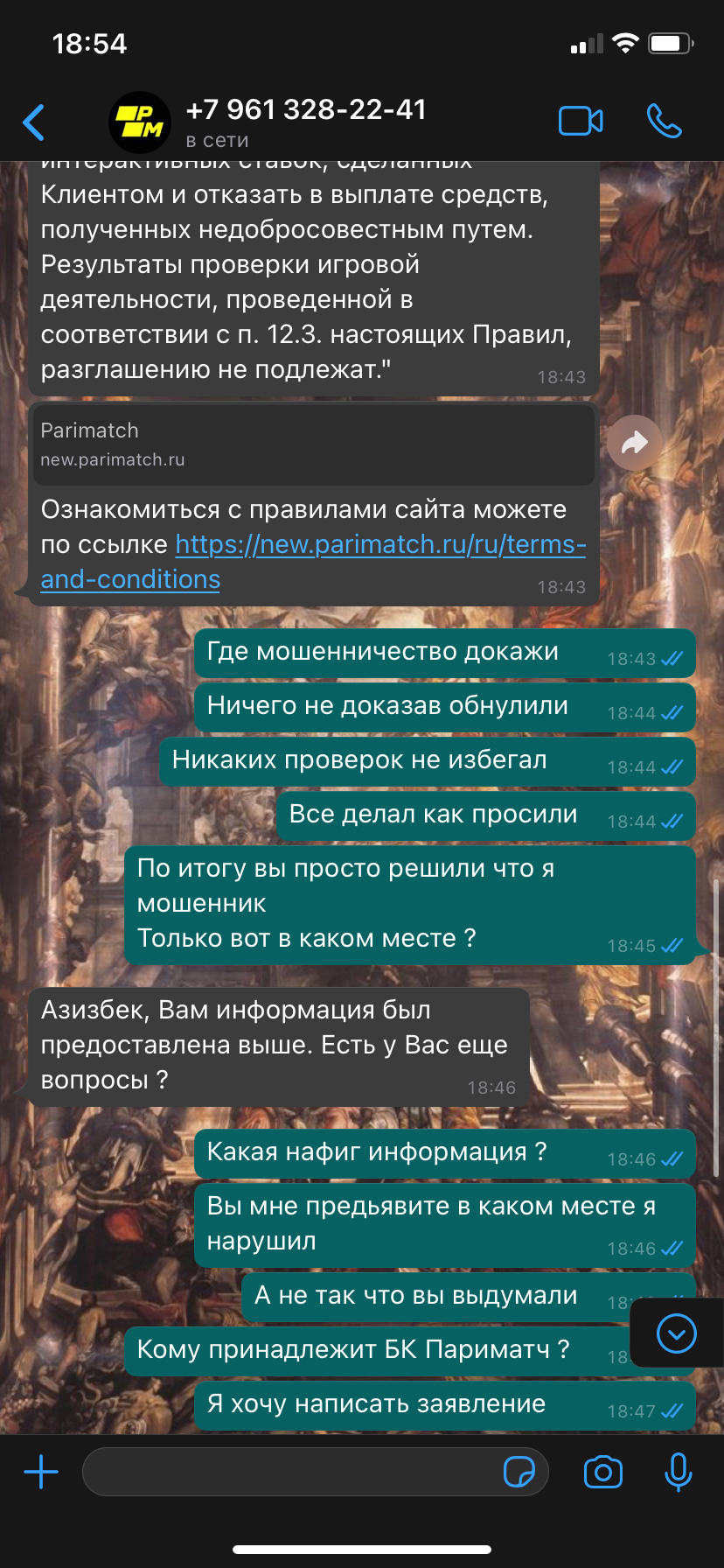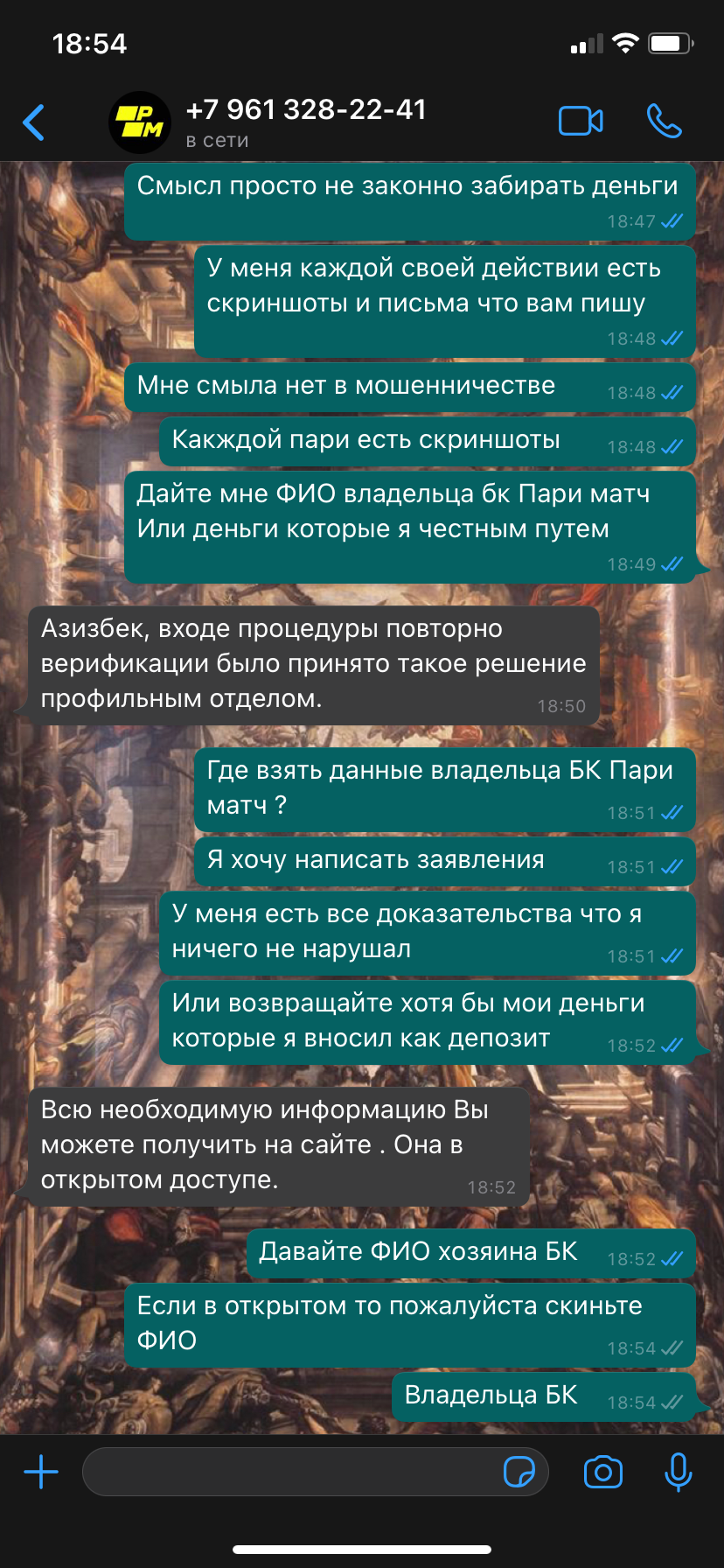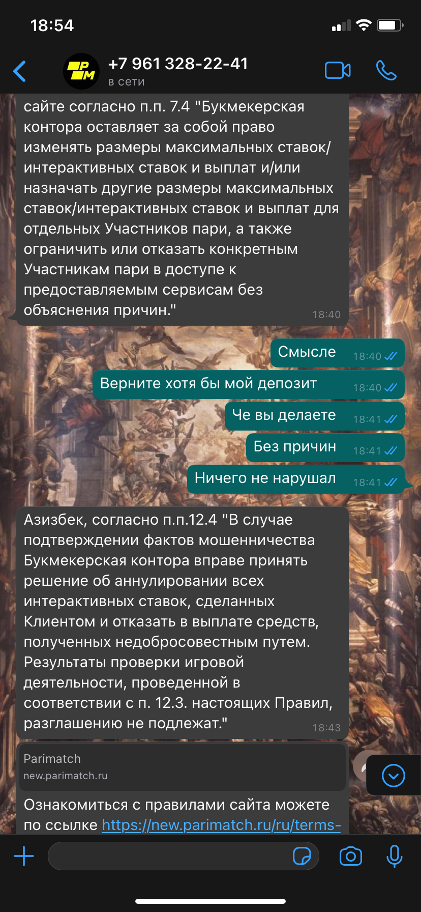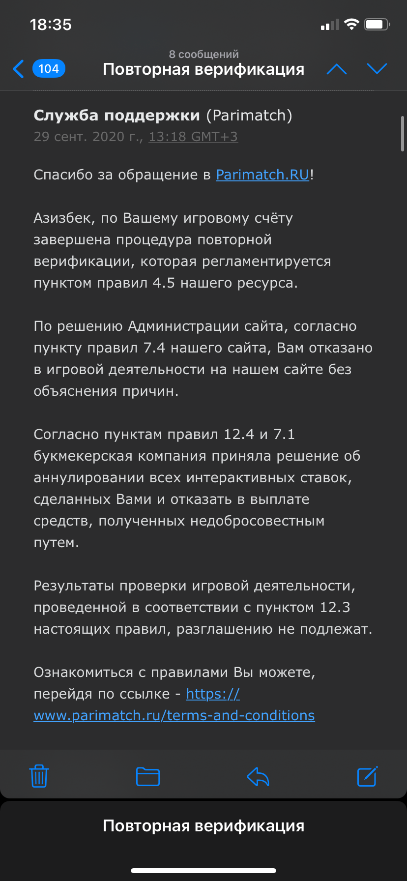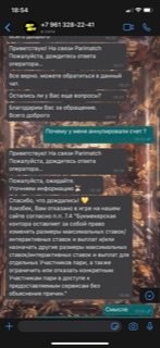 Арбитраж Легалбет получил комментарии и разъяснения со стороны букмекера : выигрыши по решению службы СБ аннулированы за нарушение правил – использование чужих персональных данных. При этом владелец аккаунта идентифицирован согласно законодательства РФ. Арбитраж Легалбет ставит под сомнение законность аннулирования выигрышей клиентов на основании видеоидентификации. До получения юридически обоснованного мнения статус Вне компетенции.