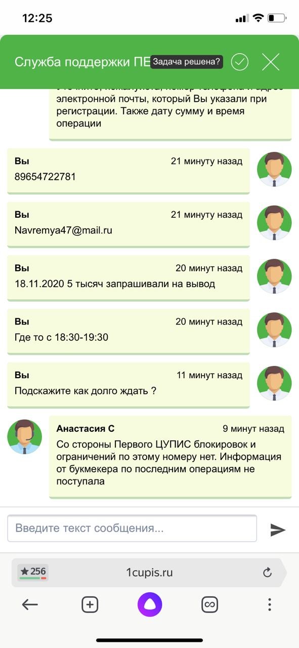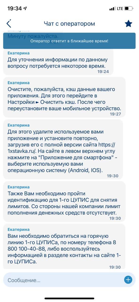 Добрый день. Ситуация следующая, играю в бк 1xstavka, уже давно, удалось выиграть небольшую сумму, после чего захотел вывести. Создал заявку на вывод, мне отказали, я создал вторую заявку, такая же ситуация. После чего я написал в поддержку бк, с текстом, в чем причина отказа?!! На что мне ответили, что необходимо обратить в первый цупис для прохождения идентификации для снятие лимитов, мол с их стороны никаких ограничений для вывода средств нет. Указали номер горячей линии. Я уже шестой день звоню на горячую линию, никто не отвечает, я звоню на все номера поддержки и горячей линии, никто не ответ л. Я написал им на почту, тишина гробовая. Может вы сможете мне помочь разобраться в этой проблеме?! Спасибо