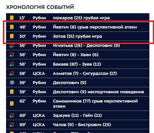 во втором тайме рубин получил первую карточку на 50 минуте, вторую на 59 минуте.