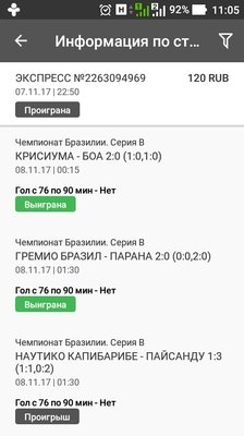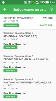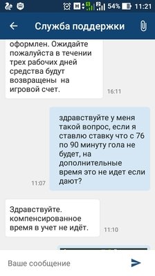 Хорошее приложение мне было удобно, хороший кф Сегодня ночью ставил экспресс на чемпионат Бразилии, две игры прошло, третья нет, ставил что гола не будет 76 по 90, гола не было и ставка бы прошла, а они сделали пройгрыш, ставил 100 рублей мне не обидно, обидно то что играл у них уже около года и такого не было, общался с оператором, говорят напиши на почту info1xstavka сообщение вобще блокируют типа имейла такого нет, не знаю как вы друзья пока с моей ставкой не разберуться я ставить там не буду, купон можете посмотреть сами 2263094969