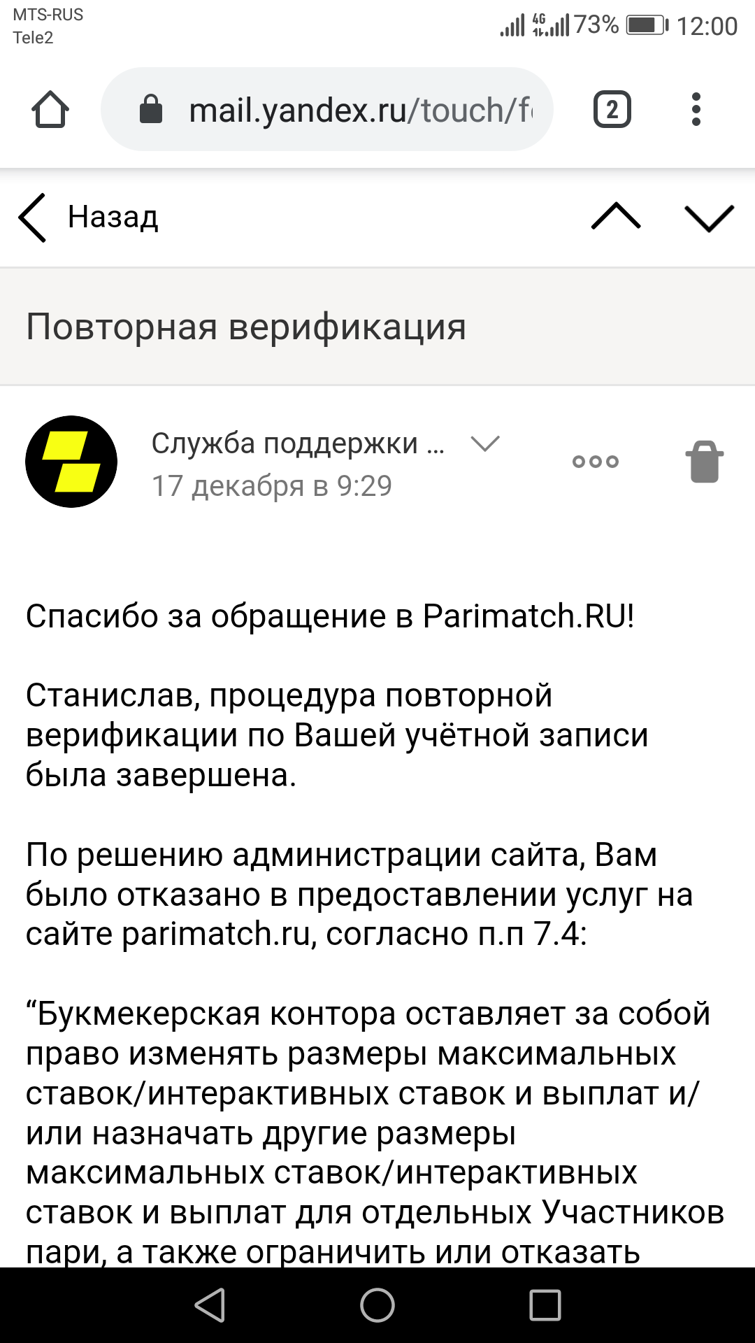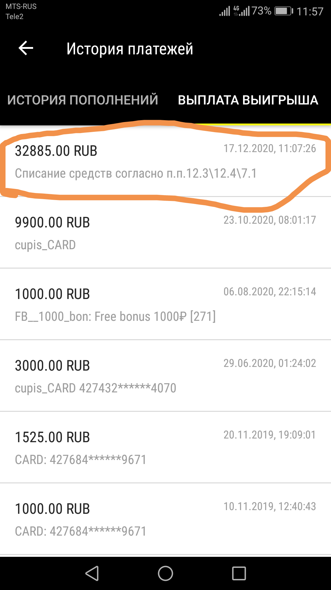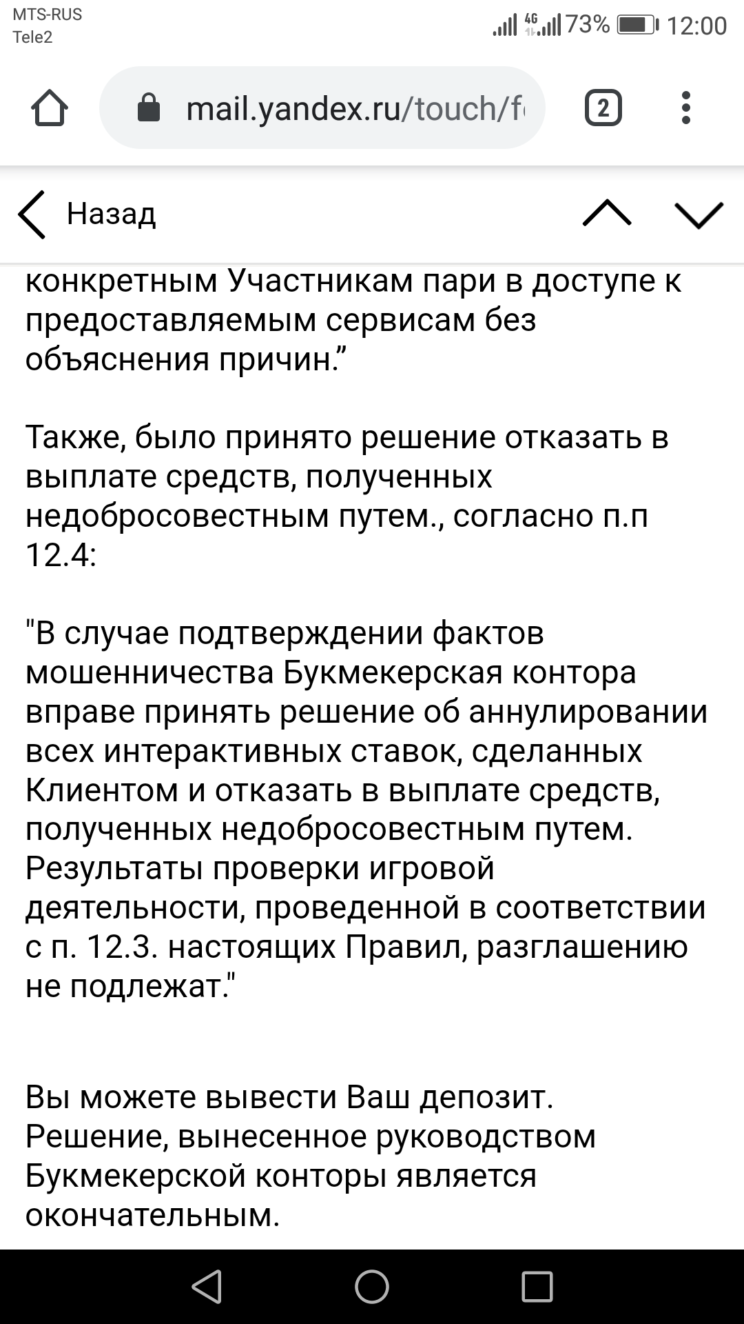 Настоятельно всем рекомендую обходить данную БК стороной ! данная Бк рассчитана только забирать деньги,, а не выплачивать! Зарегистрирован почти во всех известных конторах уже года 3 , не одна не поступала так как Париматч!, в банной БК играл, проигрывал 2,5 года , как только начал выходить в плюс, забрали просто почти все деньги с баланса и всё!, 32885р списали себе в карман ,, типа ты мошенник и всё!,,, 2,5 года я нормальный был,,, как выиграл я мошенник!,, в чем заключается мошенничество они не говорят! Номер аккаунта 2553129