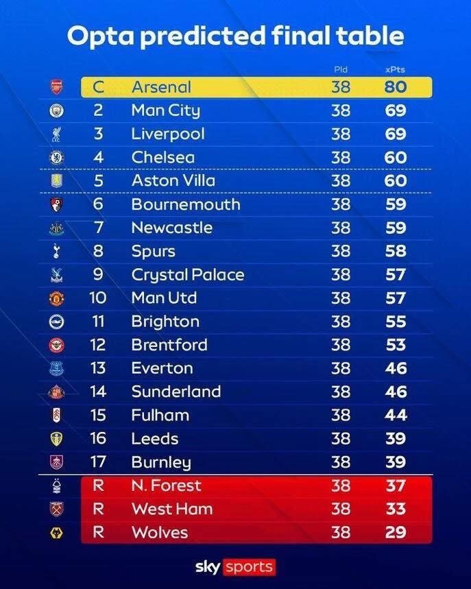 ◾ «Вулвз», которые выдали худший старт в истории АПЛ и пока набрали всего 2 очка, внезапно должны включить турбо-режим и завершить сезон с 29 баллами. Правда, всё равно последними. Вместе с ними в Чемпионшип Opta отправляет «Вест Хэм» за