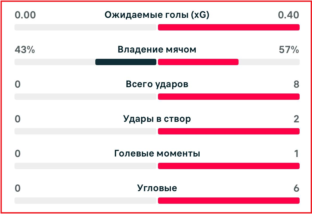 Правда, при всей этой доминации «Олимпиакоса» счёт к перерыву не открыт — 0:0, зато греки уже сели на две жёлтые карточки и аж четыре раза за 45 минут попали в офсайд. Не очень обнадёживающая статистика для «Кайрата»: в 12 из 13 последних официальных матчей на выезде греки всё-таки забивали (исключение — встреча на «Эмирейтс» с непробиваемым «Арсеналом»).