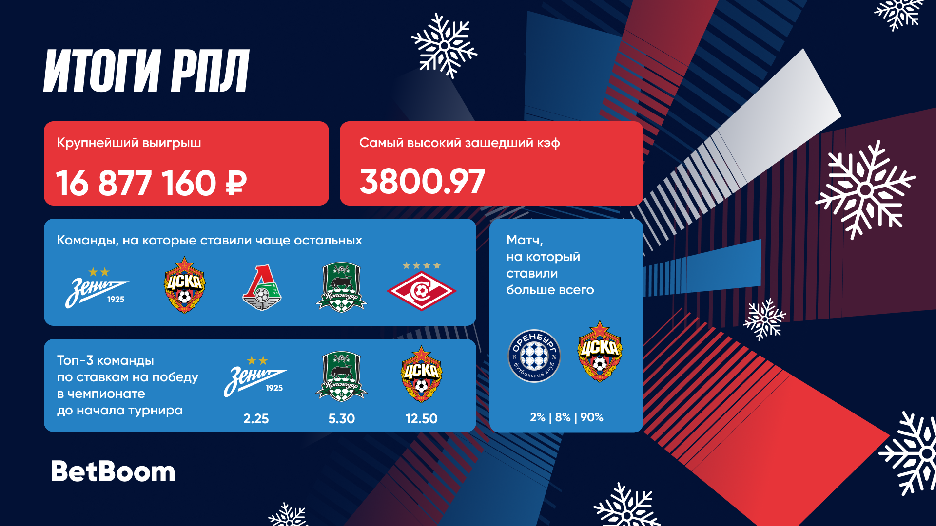 Пока сама лига на паузе, а клубы готовятся к трансферному окну и решают, увольнять ли тренеров, букмекеры собирают главные ставочные хайлайты осенней части сезона. У BetBoom получилось так:
