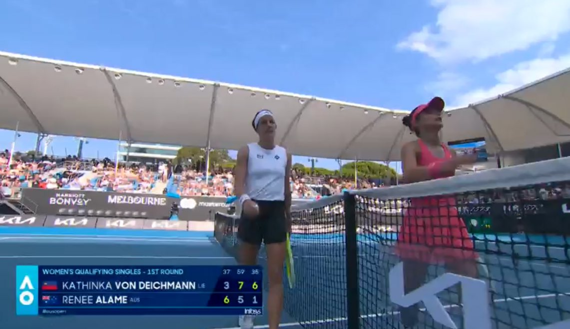 16-летняя австралийка Рени Аламе до сегодняшнего дня не набрала ни одного рейтингового очка в WTA, но всё равно получила wild card в квалификацию от организаторов АО как местная звёздочка, подающая большие надежды — и это при том, что даже на юниорских ТБШ Аламе ни разу в жизни не проходила дальше второго круга. В первом раунде ей досталась 258-я ракетка мира Катинка фон Дайхманн из Лихтенштейна — естественно, выходившая явной фавориткой за 1.20 против безрейтинговой теннисистки.