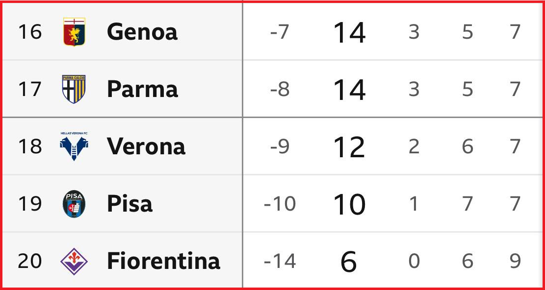В 15-м туре Серии А «Фиорентина» снова оступилась — дома проиграла соседу по подвалу таблицы «Вероне». Это поражение продлило безвыигрышную серию до 15 матчей: команда Паоло Ваноли остаётся единственной в лиге с нулём побед.