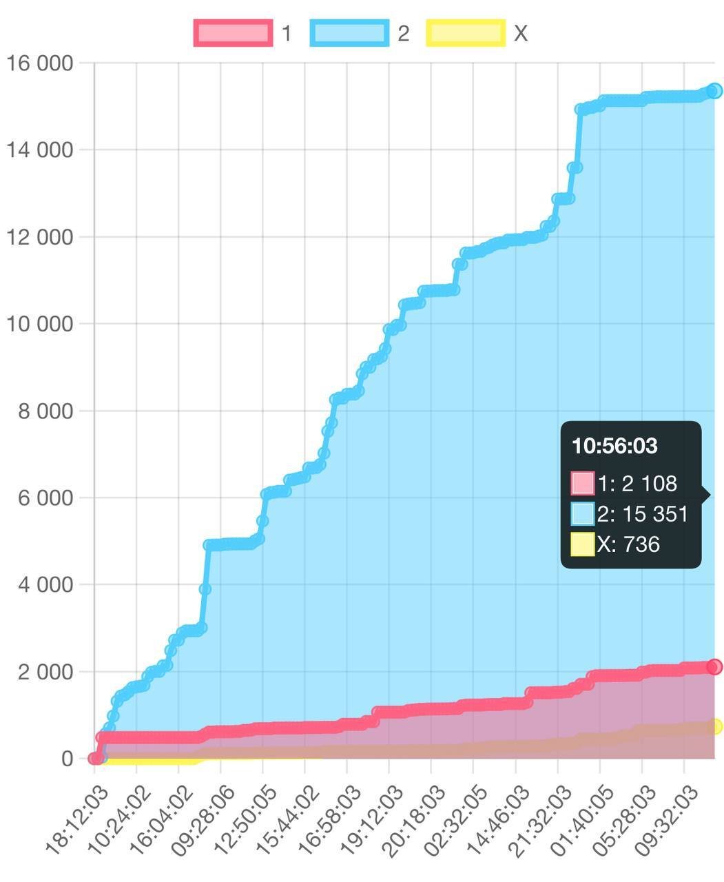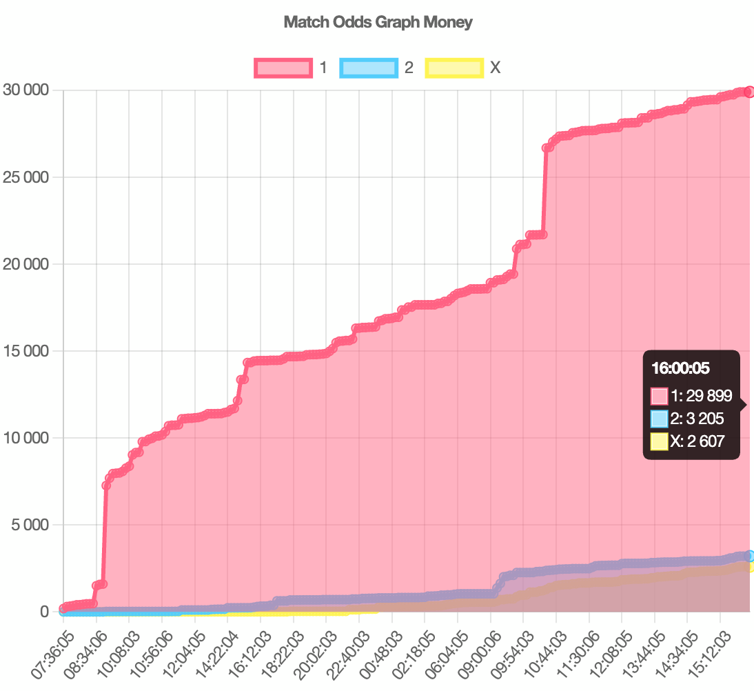 В день матча на П2 проставлено 15+ тысяч евро, 84% от всего объёма пари на исходы. Но линия подравнялась в сторону «Эмелека»: