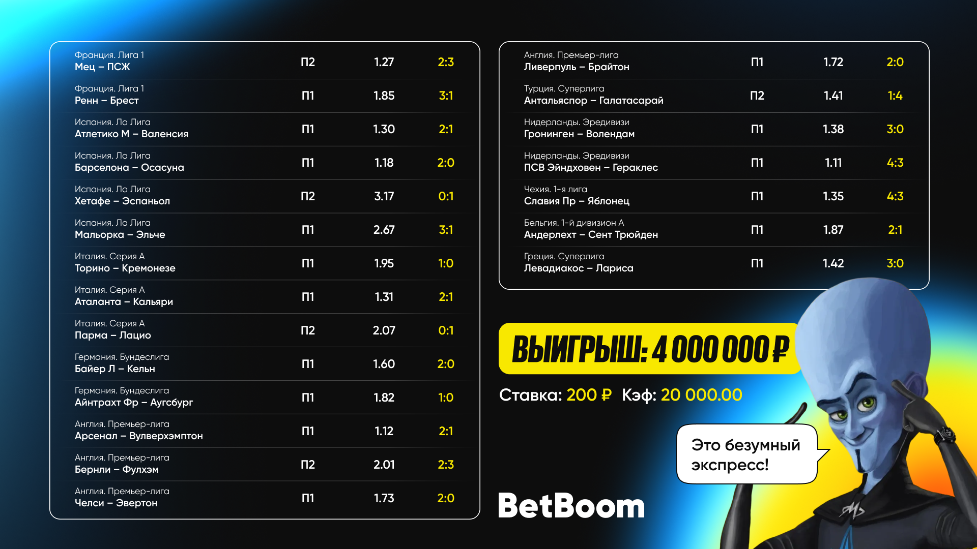 Задача: угадать точный счёт и автора одного из голов (любого). Приз — 1000 рублей.