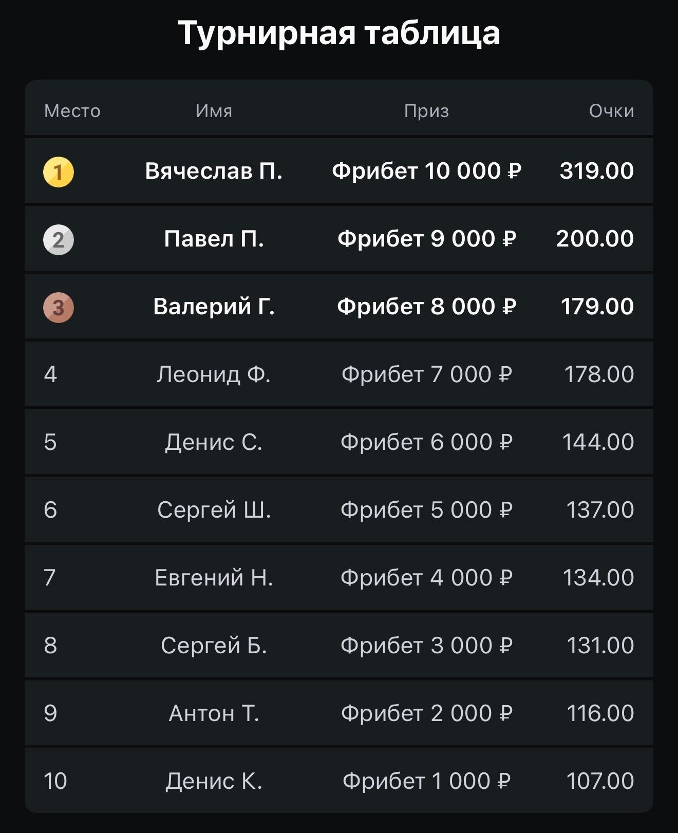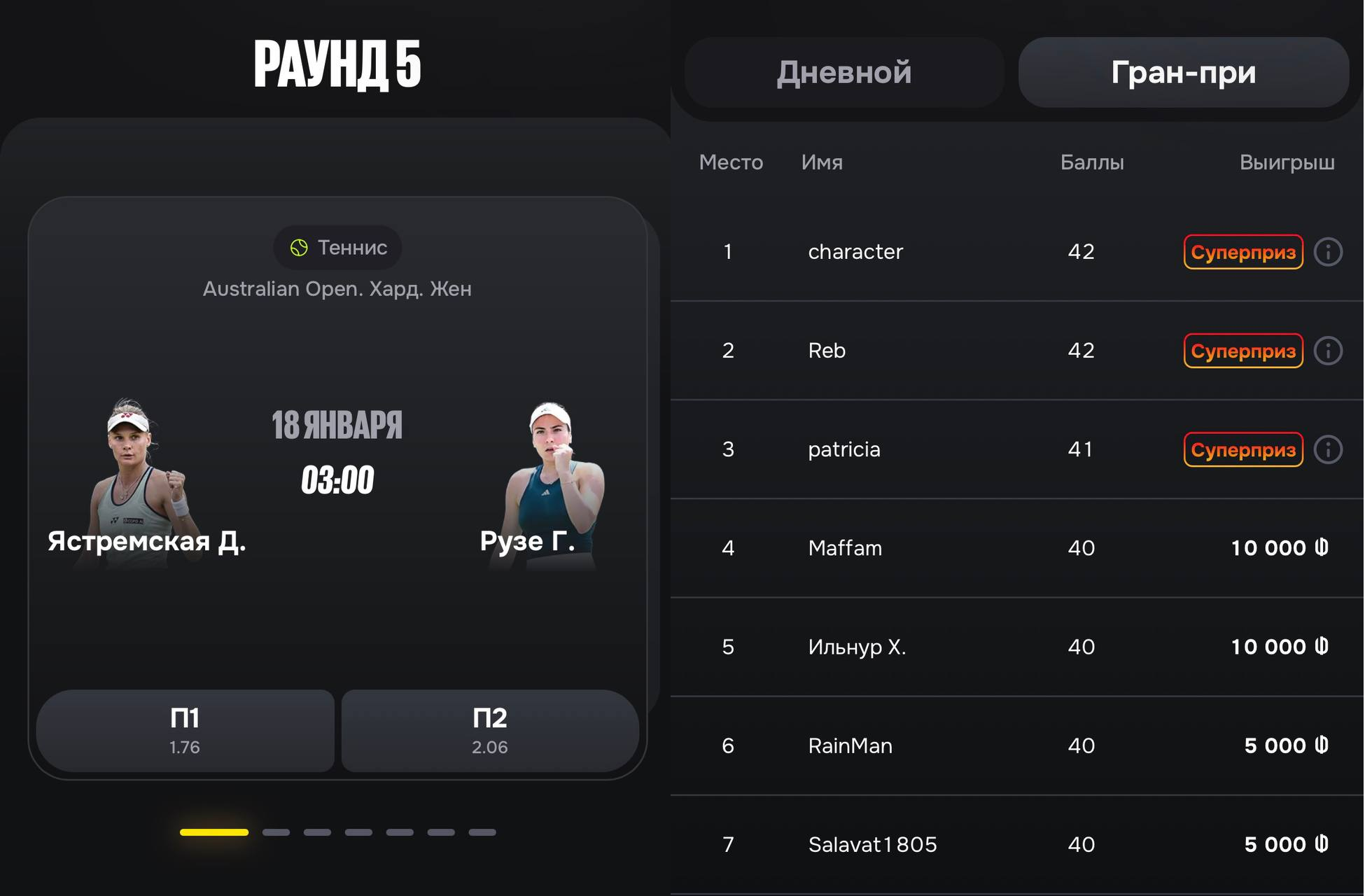 — В Fonbet турнира конкретно под Australian Open нет, зато есть классический еженедельный теннисный турик с 3 миллионами призовых. Подходят ставки от 500 рублей с кэфами не ниже 1.30, а очки начисляются ровно так же, как в «ЛС»: их количество равно сумме чистого выигрыша.