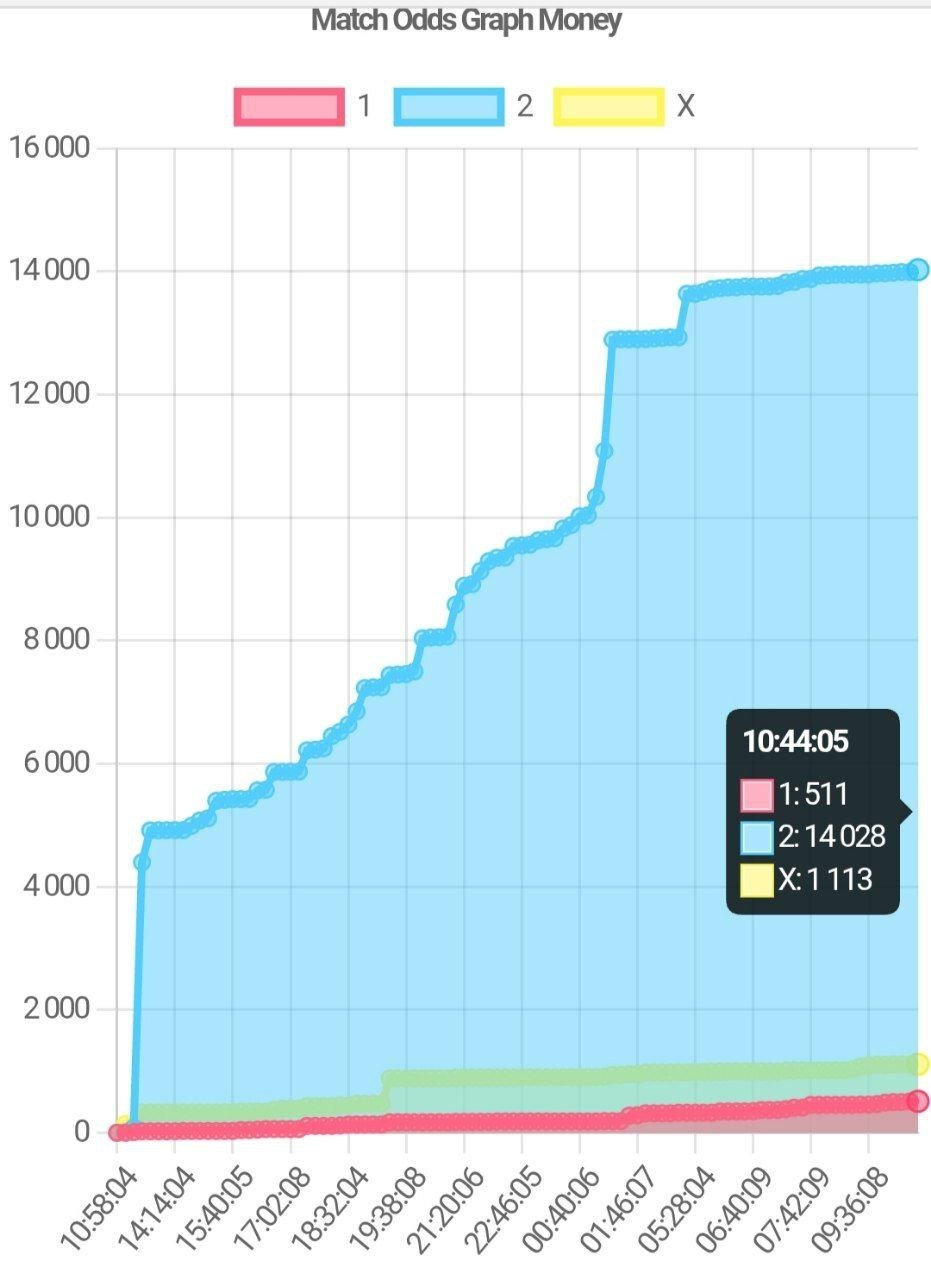 Сегодня на матч «Эюпспор» — «Игдир Беледиеспор» проставили уже более 17 тысяч евро, а 14 из них ушли на гостей — около 90% всех денег на исходы. При этом «Игдир» открывался явным андердогом за 5.40, а сейчас коэффициент на него в районе двойки.