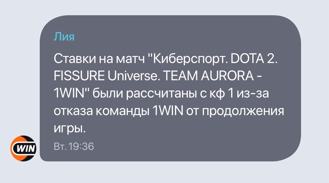 У OLIMPBET в правилах указано, что конкретно пари на итоговую победу никто через 1.00 считать не будет, так что там победила Aurora.