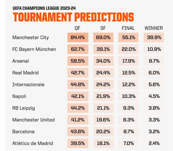1. Титул «Сити» почти в 4 раза вероятнее чемпионства любой другой команды. На деле разрыв на настолько большой: