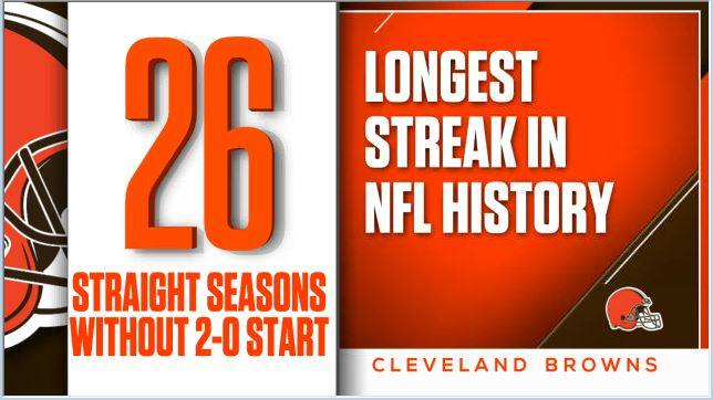 Как и написано на картинке, это самая длинная подобная серия в истории НФЛ. В последний раз «Кливленд» стартовал с двух выигранных матчей аж в 1993-м году — тогда было даже 3 победы подряд, но закончилось тогда, кстати, всё плохо — «Браунс» забрали лишь 7 матчей из 16 и не вышли в плей-офф.
