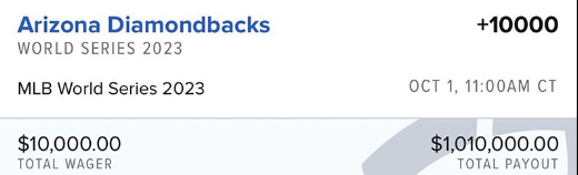 Ранее сообщалось, что нашёлся парень из «Аризоны» со ставкой в 1000 долларов с коэффициентом 131.00 — тут ещё круче — 10 тысяч долларов за 101.00 — миллиончик на выплату.