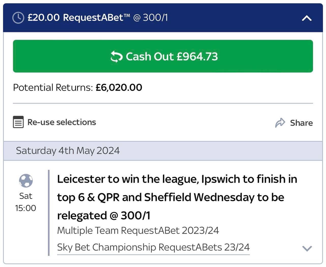 Перед стартом сезона клиент Sky Bet собрал долгосрочный экспресс на Чемпионшип вот из этого: