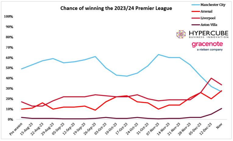 Вот к чему привёл спад «Сити»: по данным суперкомпьютера Euro Club Index, вероятность чемпионства «Манчестера» перед стартом сезона была ровно 50%, но дропнулась практически вполовину — до 27%. При этом букмекерские конторы ещё считают «МС» главным претендентом за 2.50