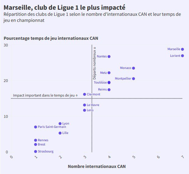 Обе команды потеряли по 7 футболистов почти на весь январь (как минимум) — больше всех в чемпионате Франции, и именно для этих клубов потери оказались наиболее ощутимыми. В особенности Кубок Африки ударил по «Марселю» — в сборные разъехались Чансель Мбемба (Конго), Амин Харит (Марокко), Аззеддин Унахи (Марокко), Папе Гейе (Сенегал), Илиман Ндиайе (Сенегал), Исмаила Сарр (Сенегал), Симон Нгапандуэтнбу (Сенегал). И марсельцам ещё повезло, что сборные Джеффри Кондогбия (Центральноафриканская Республика) и Пьера-Эмерика Обамеянга (Габон) не прошли квалификацию — была бы совсем катастрофа.