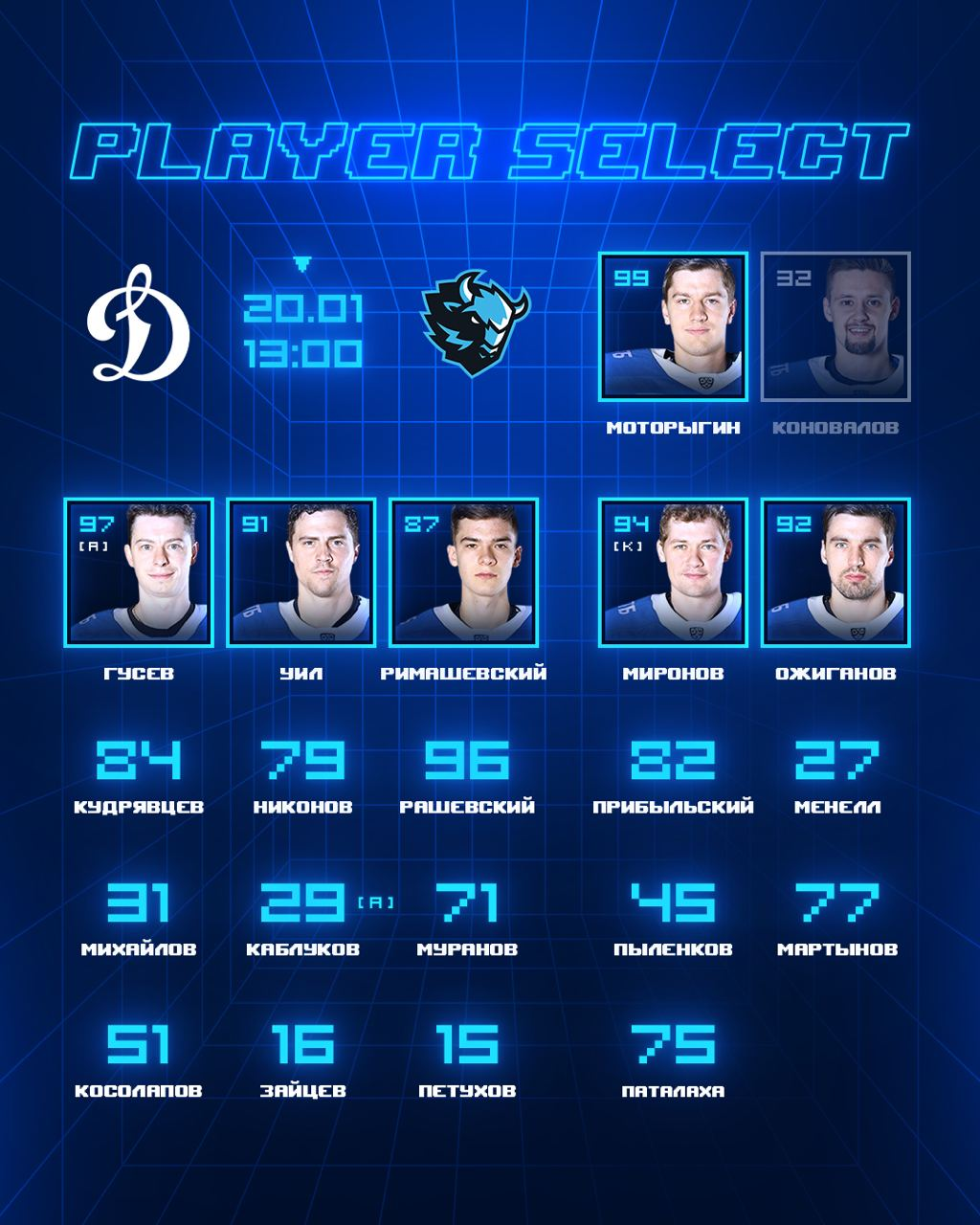 В заявке на матч с минским «Динамо» у москвичей отсутствуют Эрик О'Делл, Седрик Пакетт и Артём Ильенко — все трое пропускают игру из-за вируса в клубе. О'Делл — третий бомбардир «Динамо Москва» (41 очко) и третий в команде по показателю полезности (+14), а динамовский нападающий Седрик Пакетт набирал очки в 6 матчах подряд до сегодняшнего дня.