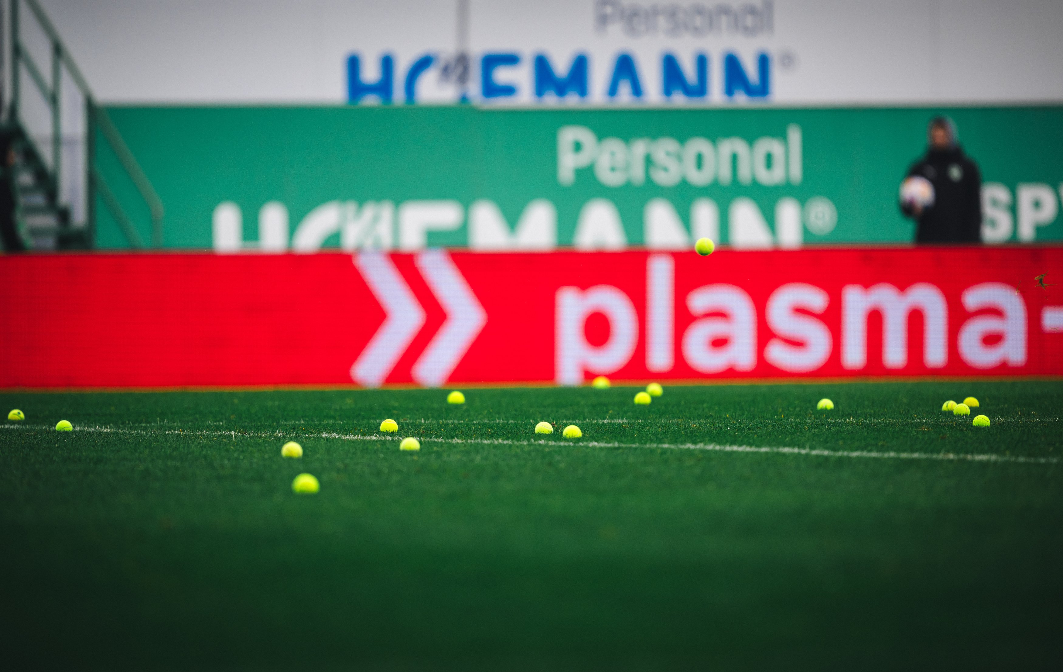 Болельщики закидали поле теннисными мячами. Пока работники убирают их с поля, судья увёл команды в раздевалки.
