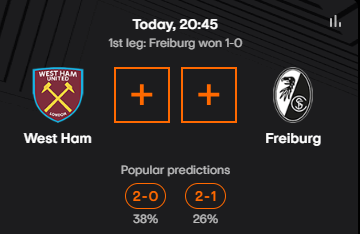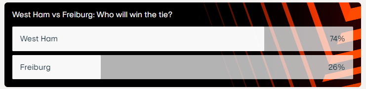 «Вест Хэм» в этой паре — проигрывающий после первого матча фаворит. Проход дальше перед первой игрой шёл за 1.5, «Фрайбург» выиграл 1:0, но для большинства это не имеет значения.