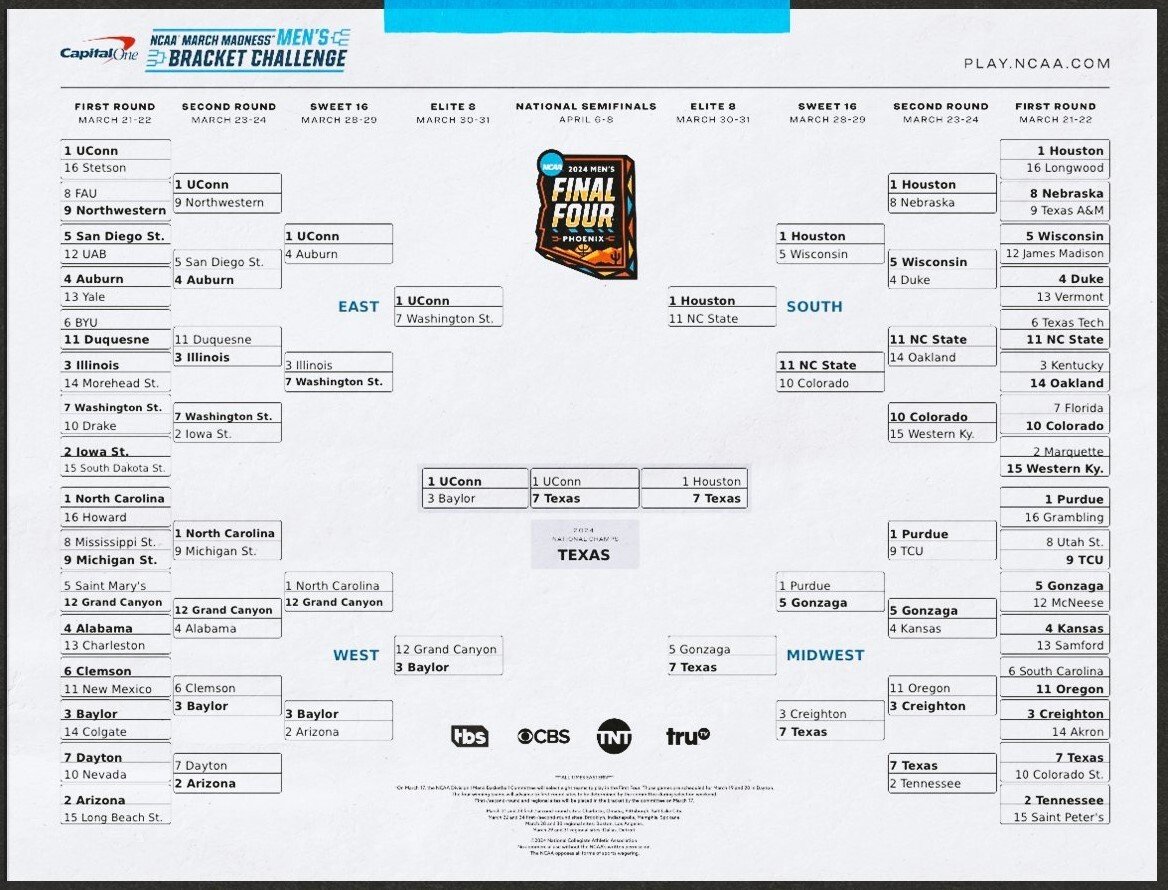 8 лет назад Уоррен Баффет сказал, что даст 1 млрд долларов тому, кто верно угадает все 63 матча Мартовского безумия. За 7 лет, как вы понимаете, никто не то, чтобы не угадал все 63 матча, самые удачливые ребята не добирались даже до 45. Вероятность угадать всю сетку — 1 к 9 квинтиллионам. Это число выглядит так: 1 000 000 000 000 000 000.