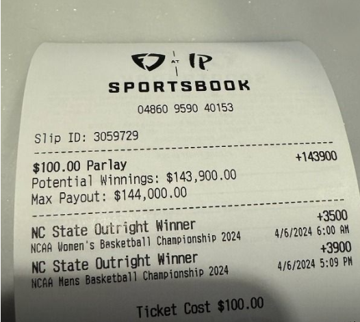 Житель штата Северная Каролина поверил в своих: зарядил двойничок на победы двух местных студенческих команд в NCAA — с коэффициентами 36.00 и 40.00.