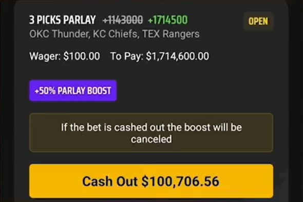 Но БК предлагает забрать 100 тысяч долларов кэшаутом (1/17 от возможного выигрыша) и закончить катку.
