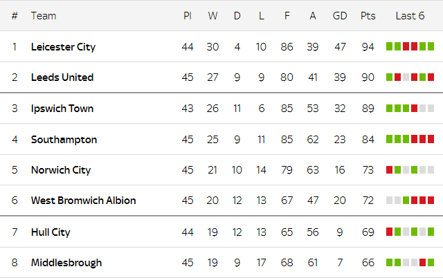 Если «Халл» играет вничью с «Ипсвичем», шансов попасть в топ-6 почти не останется — нужно будет выигрывать в последнем туре и ждать поражения «Вест Брома» от немотивированного «Престона», иначе никак. А вот если сегодня проиграть — шансов не будет вовсе: придётся побеждать «Плимут» с разницей в 10 голов и, опять же, ждать поражения «Вест Бромвича».