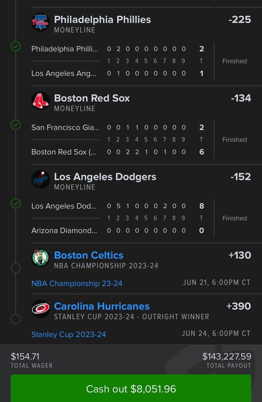 Кто-то собрал микс из полупрофессионального женского тенниса и бейсбола и украсил это титулами «Бостона» в НБА и «Каролины» в Кубке Стэнли. Констатируем факт: несмотря на то, что в экспрессе было сразу несколько андердогов, все краткосрочные события доехали.