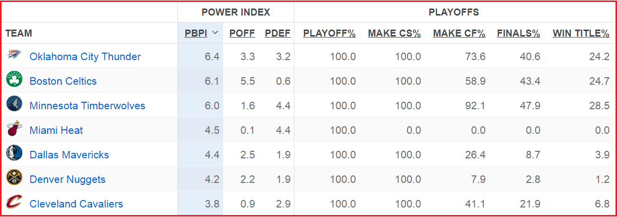 Ну и совсем парадоксальное: первым фаворитом на титул у ESPN идёт третья в рейтинге силы «Миннесота» с 28,5%. Букмекеры здесь снова за «Бостон»: «Селтикс» станут чемпионами за 1.83