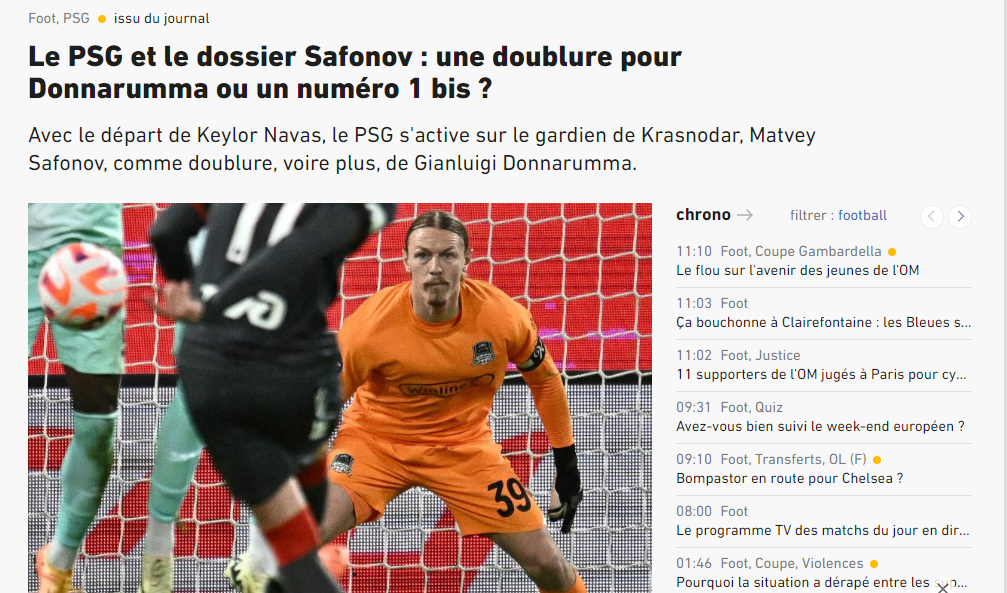 3.00 — Сафонов хотя бы раз попадёт в сборную тура по версии L'Équipe