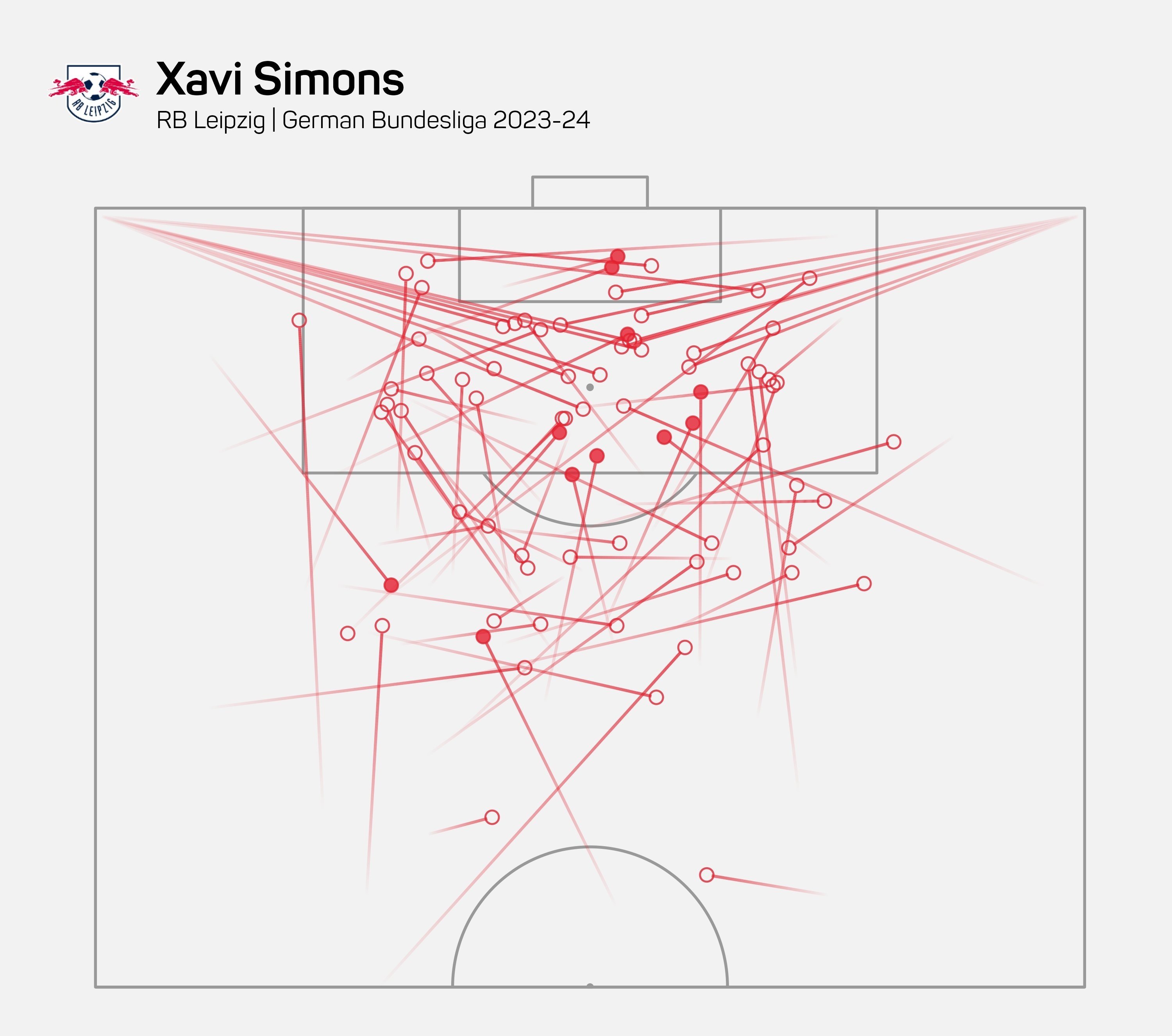 Хави Симонс («Лейпциг», сборная Нидерландов) — 10 голов и 13 голевых за весь сезон (8+11 в лиге)