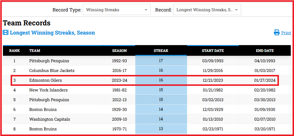 Последний раз такая серия у «Ойлерс» случилась в начале этого сезона — в декабре 2023-го. После — команда выдала 16-матчевую победную серию, 2-ю по длине в истории лиги после «Питтсбурга» (17 игр) в 1993 году.