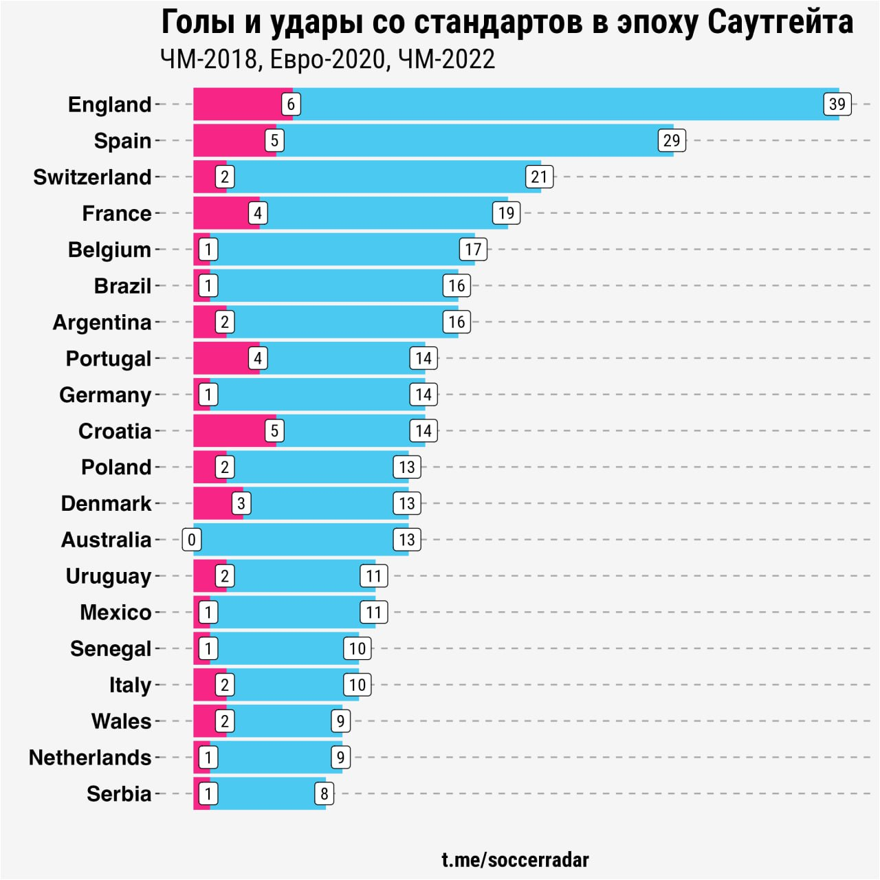 Сегодня главные спецы по стандартам встретятся с одной из худших европейских сборных по этому показателю — Сербией, которая забила всего 1 гол со штрафных/угловых на двух последних ЧМ (на Евро-2021 сербы не попали).