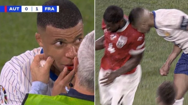 В матче против Австрии Мбаппе сломал нос, на восстановление понадобится минимум неделя.