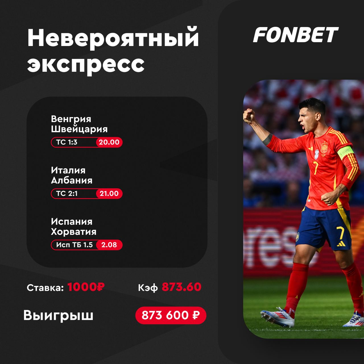 Итоговые 873.60 зашли на тоненького, повезло сразу дважды: Италия и Албания установили нужный счёт уже на 16-й минуте, остальные 74 наверняка были нервными; ну а Швейцария, наоборот, не могла забить 3-й мяч аж до 93-й.