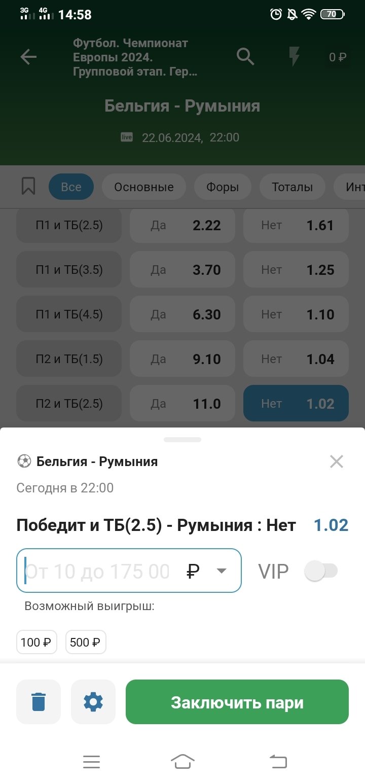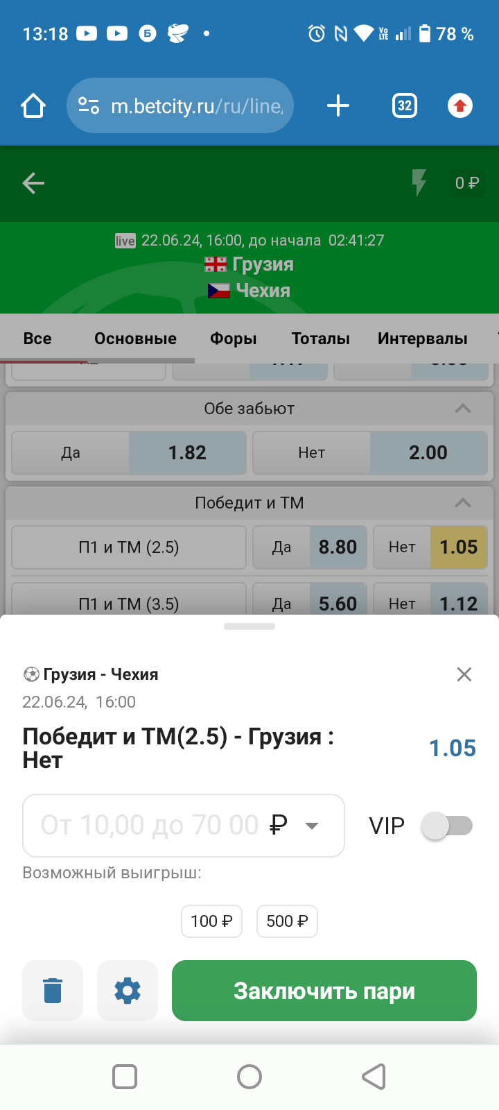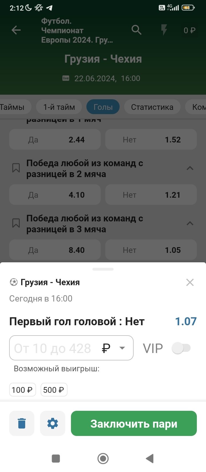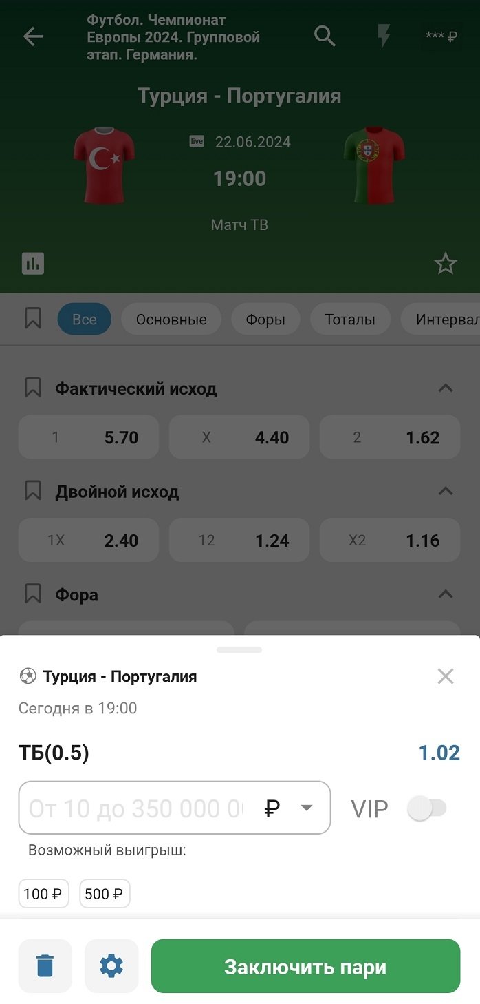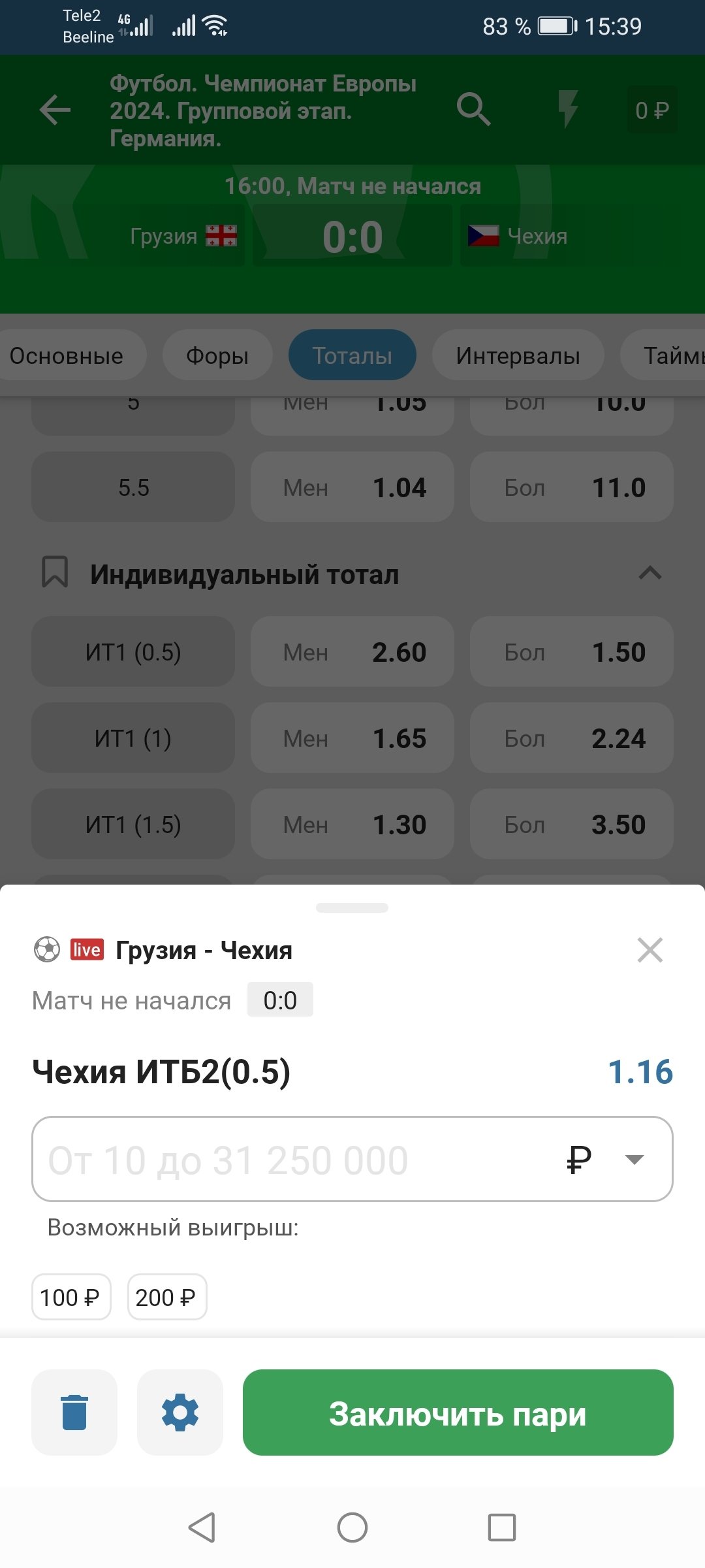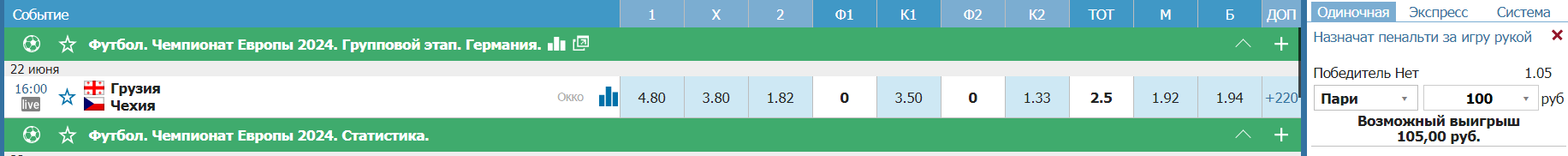 Например, вы ставите на ТБ 0,5 в матче Грузии и Чехии за 1.05. Если они сыграют 0:0, то ваша ставка проиграет, и, следовательно, вы претендуете на фрибет. А вот если грузины и чехи забьют хотя бы 1 гол, то вы выиграли, фрибет не полагается.